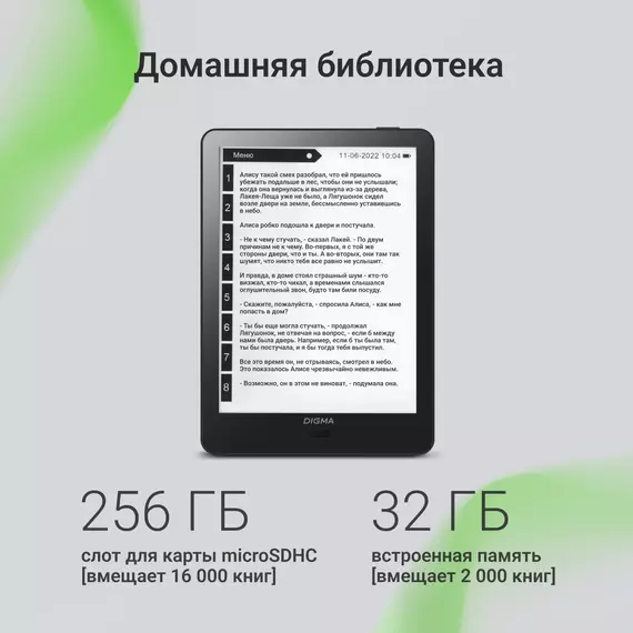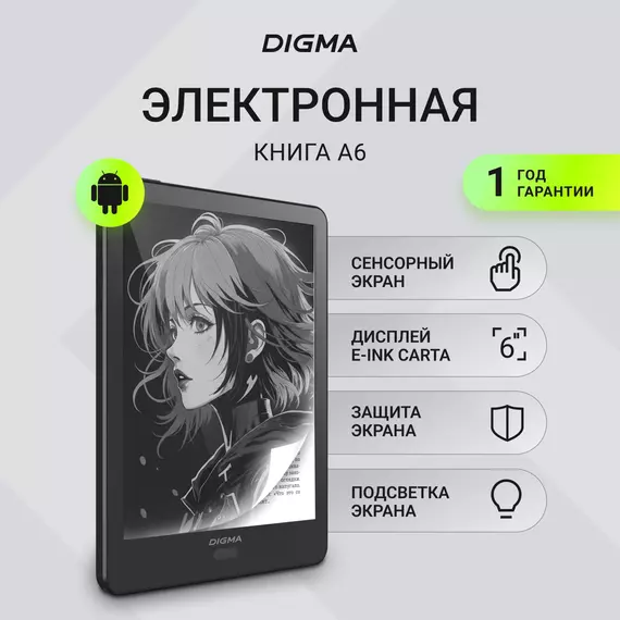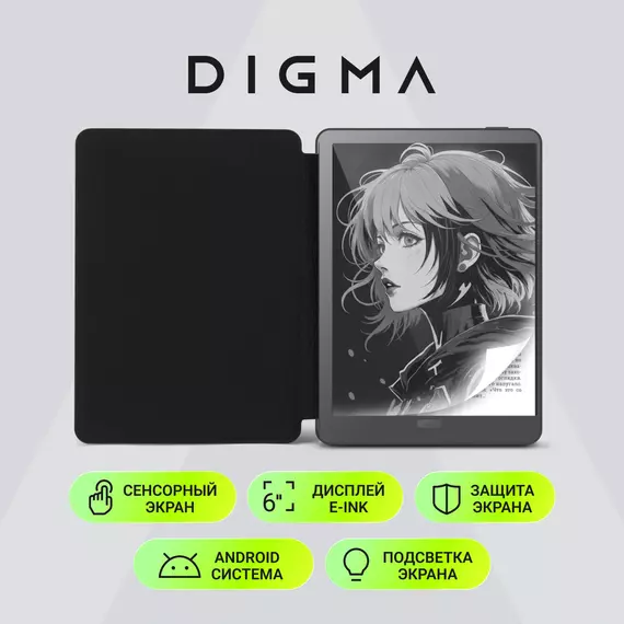 Электронная книга Digma A6 plus 6" E-Ink Carta 758x1024 Touch Screen 1.8Ghz 1Gb/32Gb/SD/microSDHC/подсветка дисплея, темно-серый, обложка [A6P]