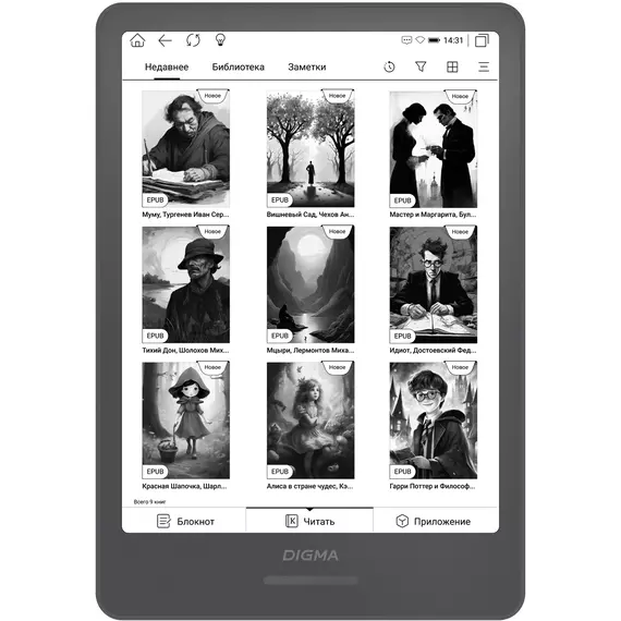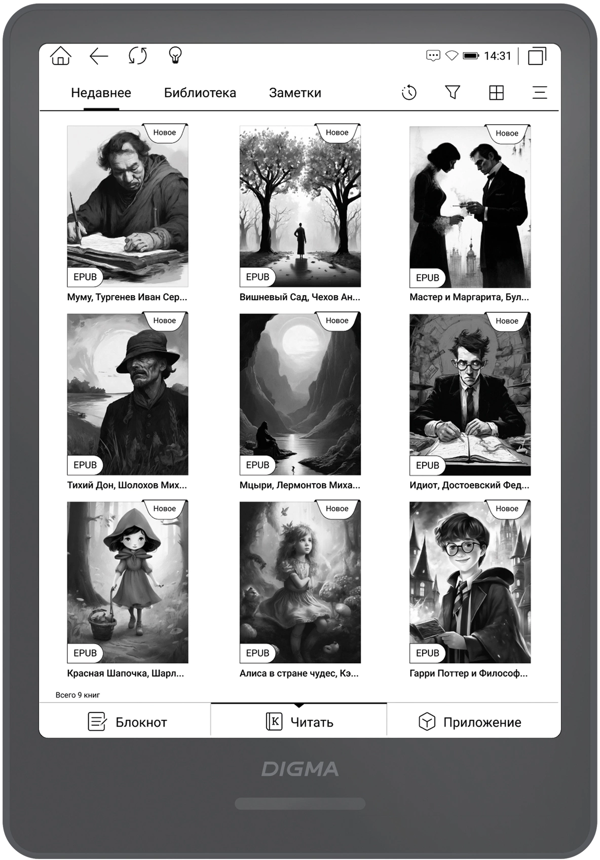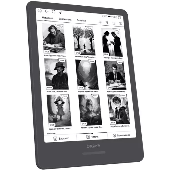| Подержка форматов книг | EPUB, PDF, MOBI, DJVU, FB2, DOC, DOCX, HTML, RTF, TXT, CHM |