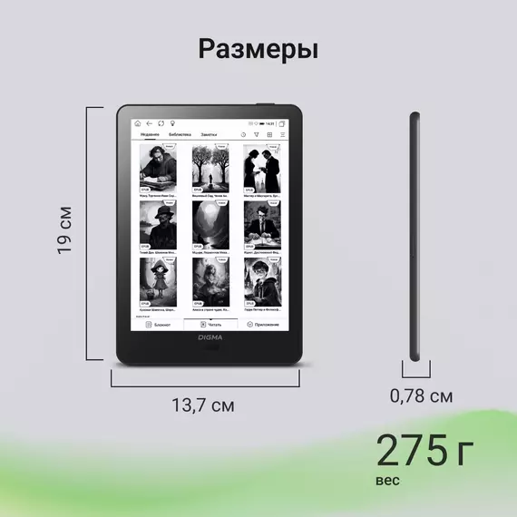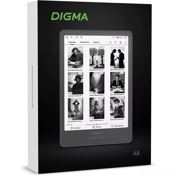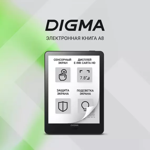 Электронная книга Digma A8 7.8" E-ink HD Carta 1873x1404 Touch Screen 1.8Ghz 3072/32Gb/SD/microSDHC/подсветка дисплея темно-серый [A8B]