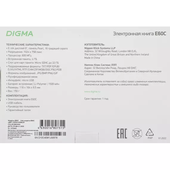 Описание Digma E60C