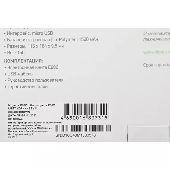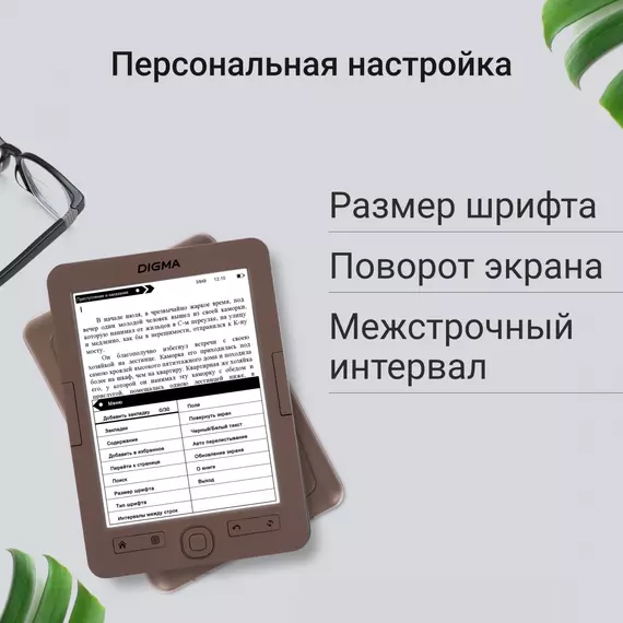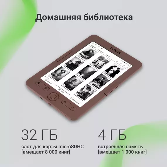 Электронная книга Digma E60C 6" E-ink HD Pearl 1024x758 600MHz 4Gb microSDHC коричневый