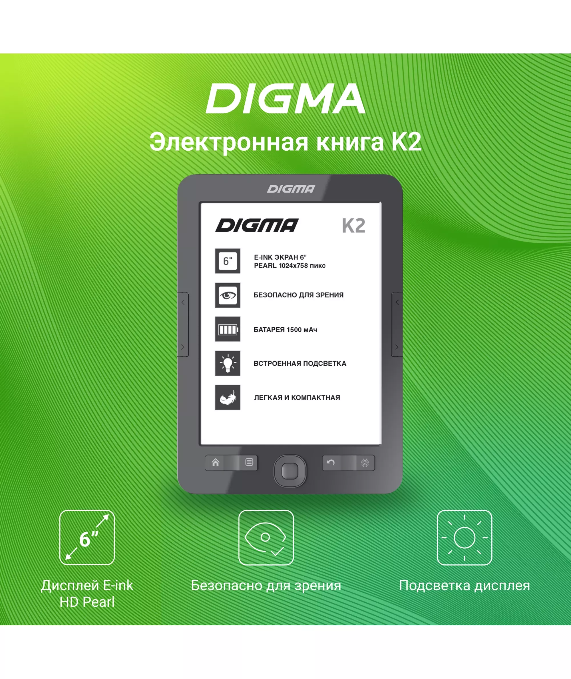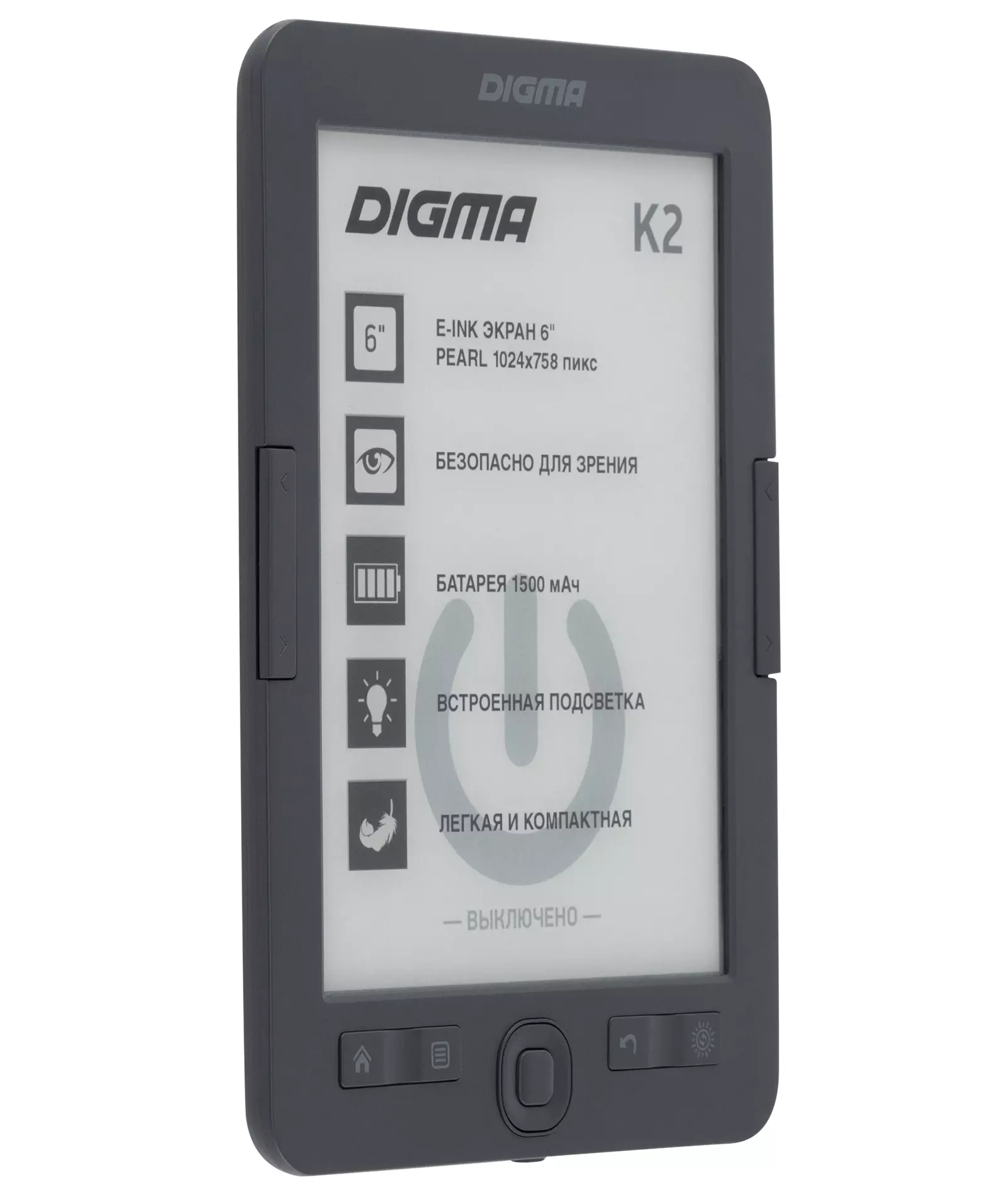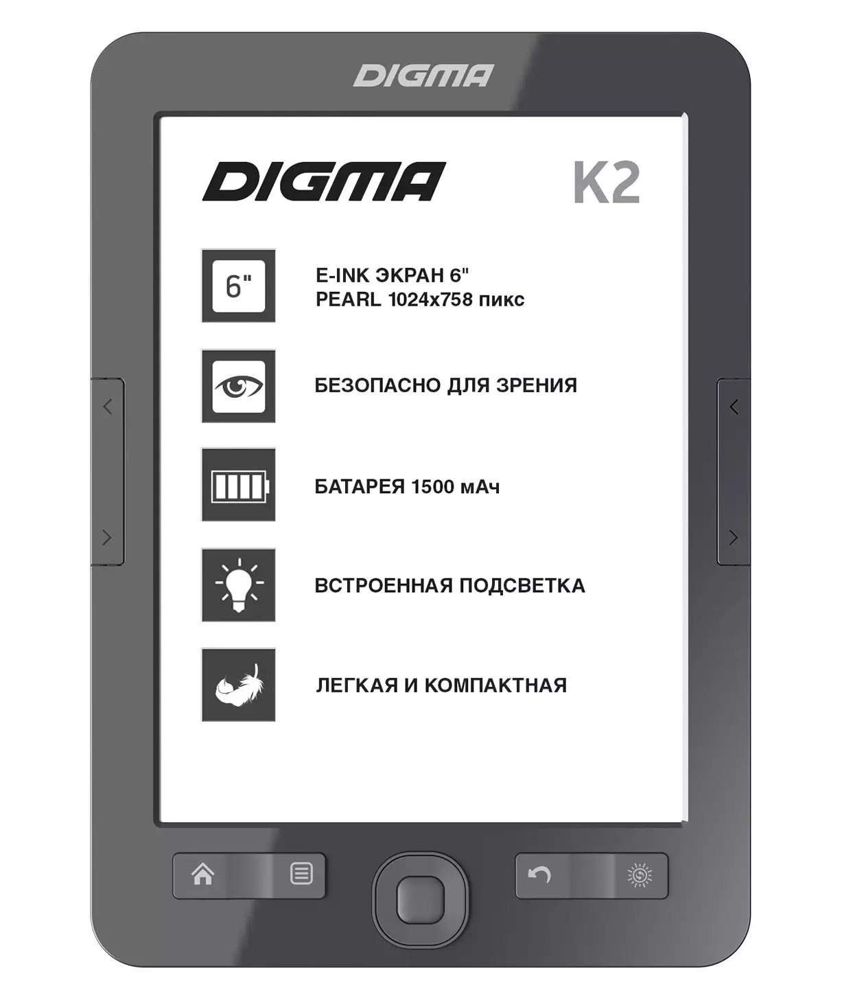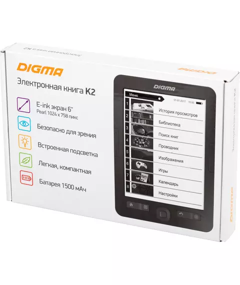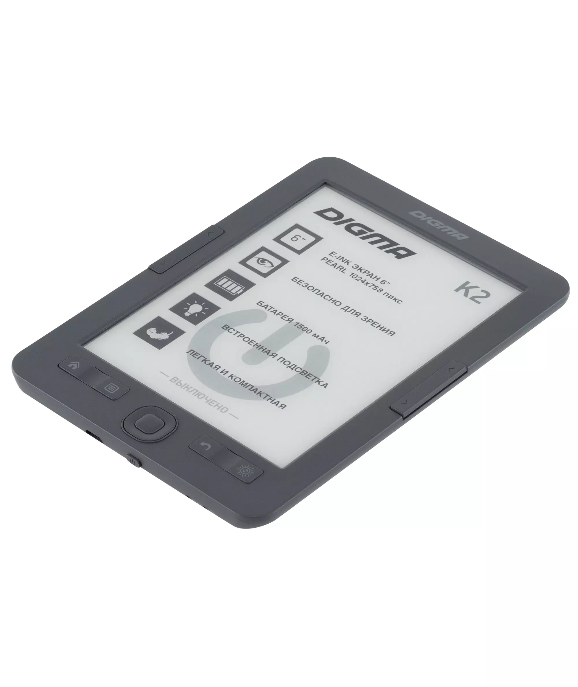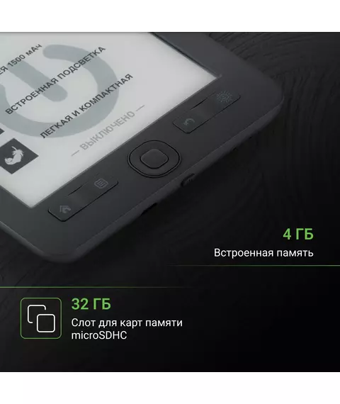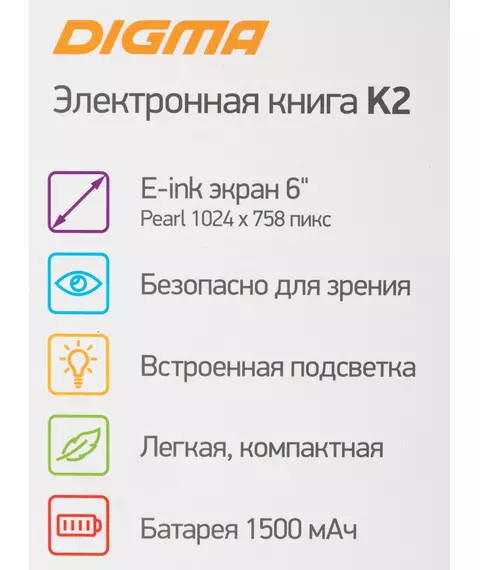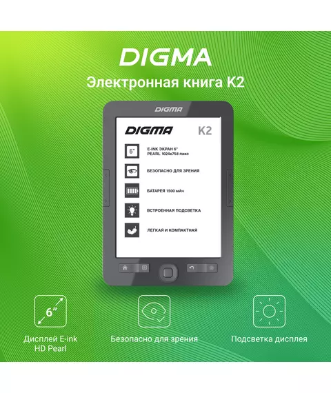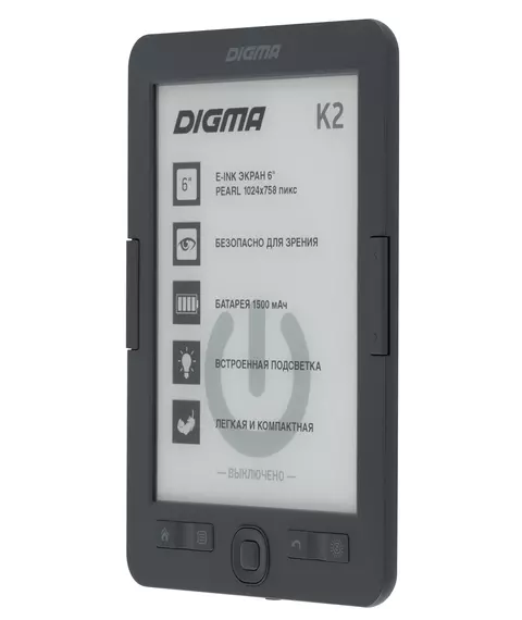Электронная книга Digma K2G 6" E-ink HD Pearl 758x1024 600MHz/4Gb/microSDHC/подсветка дисплея темно-серый