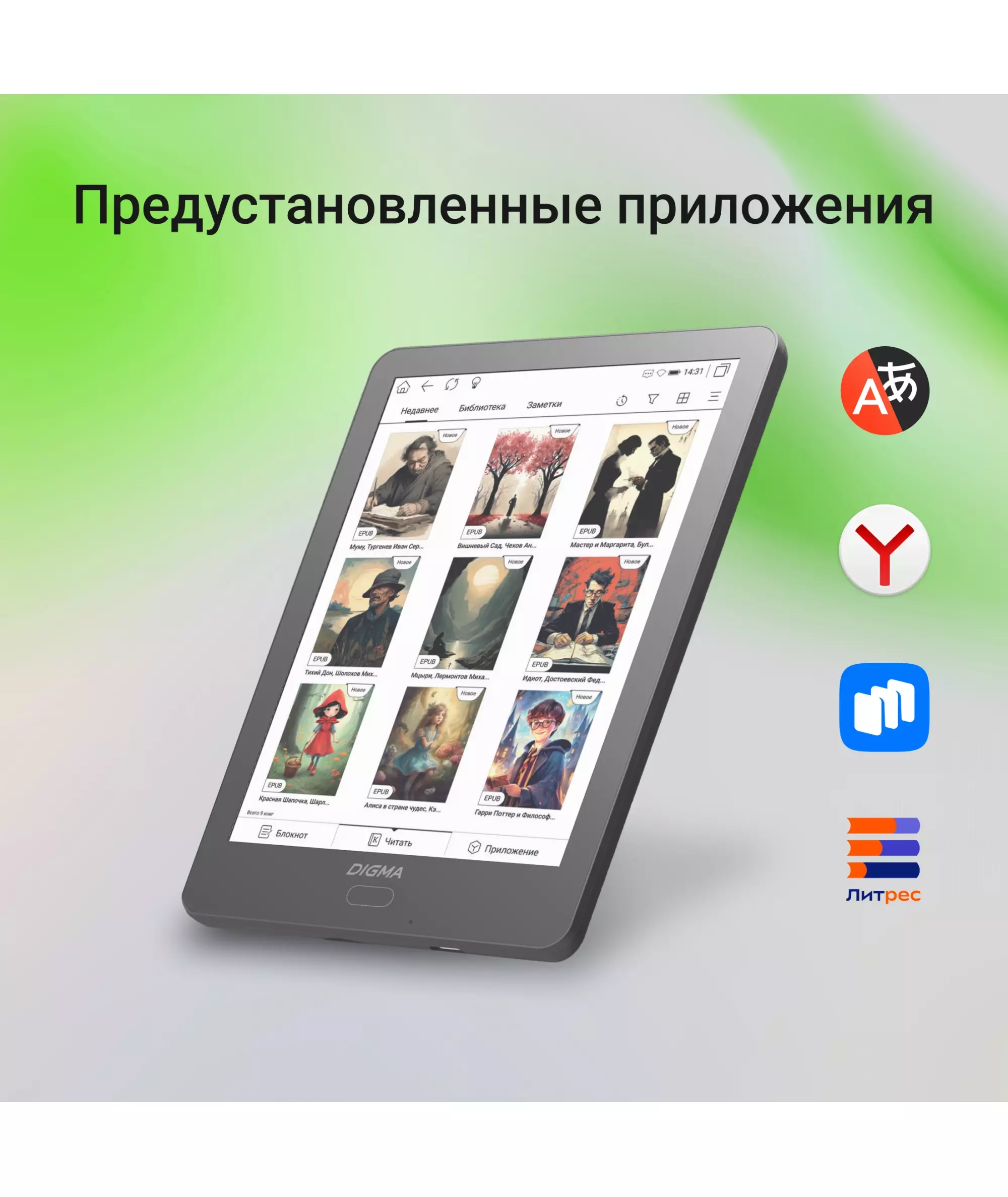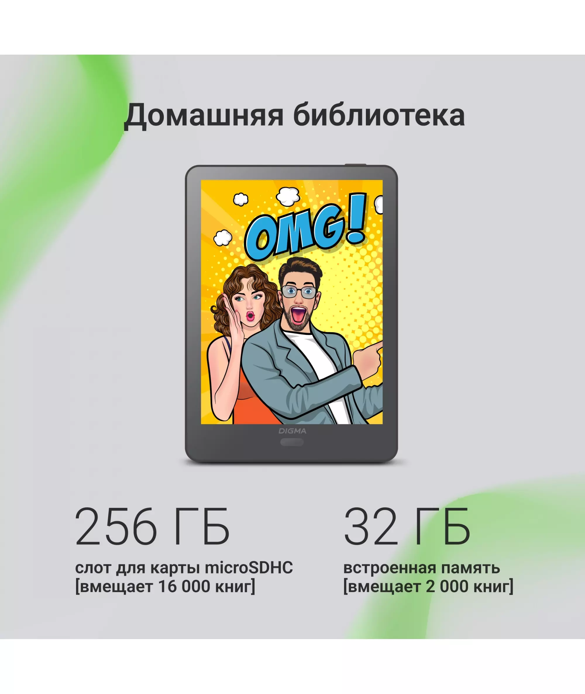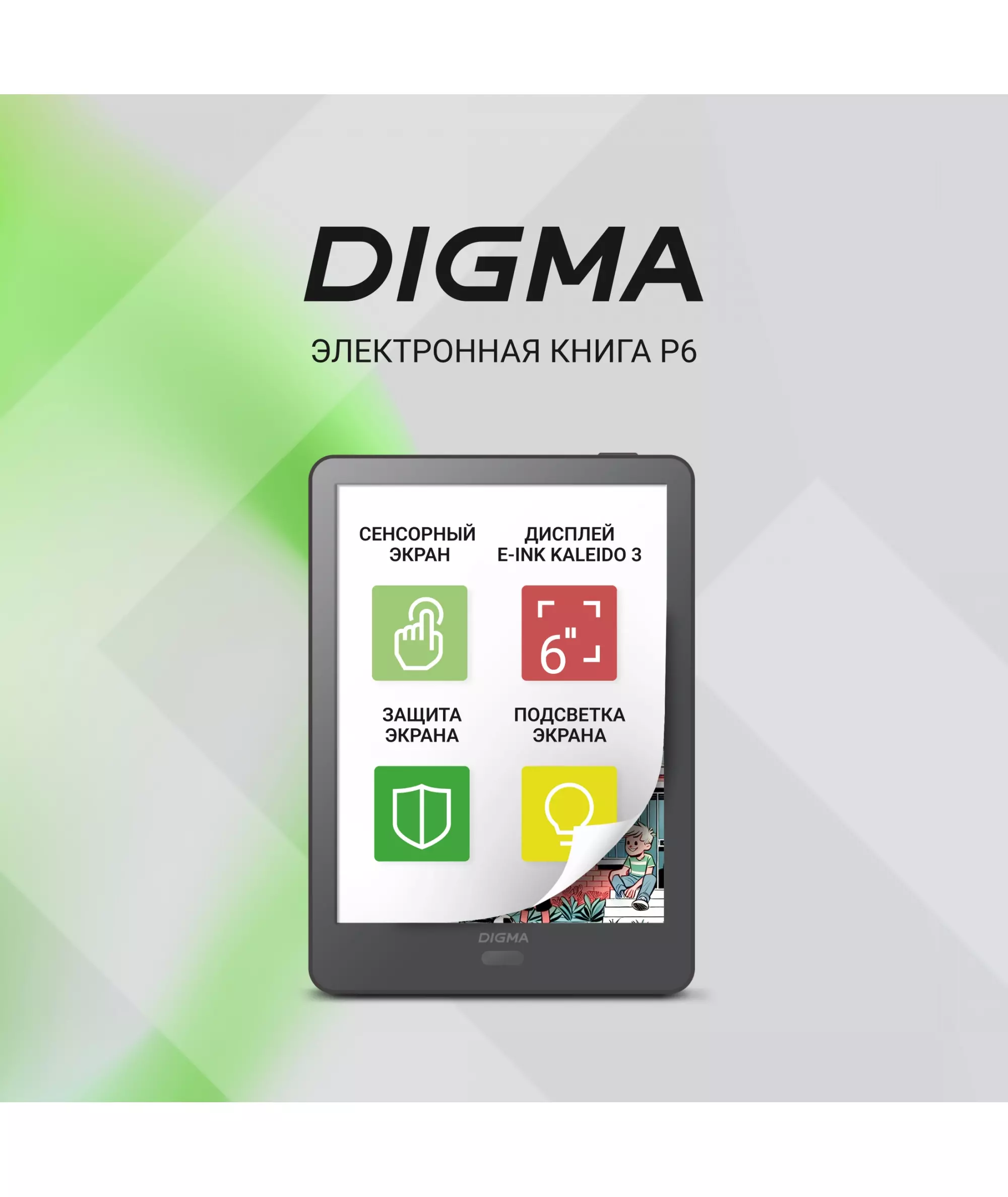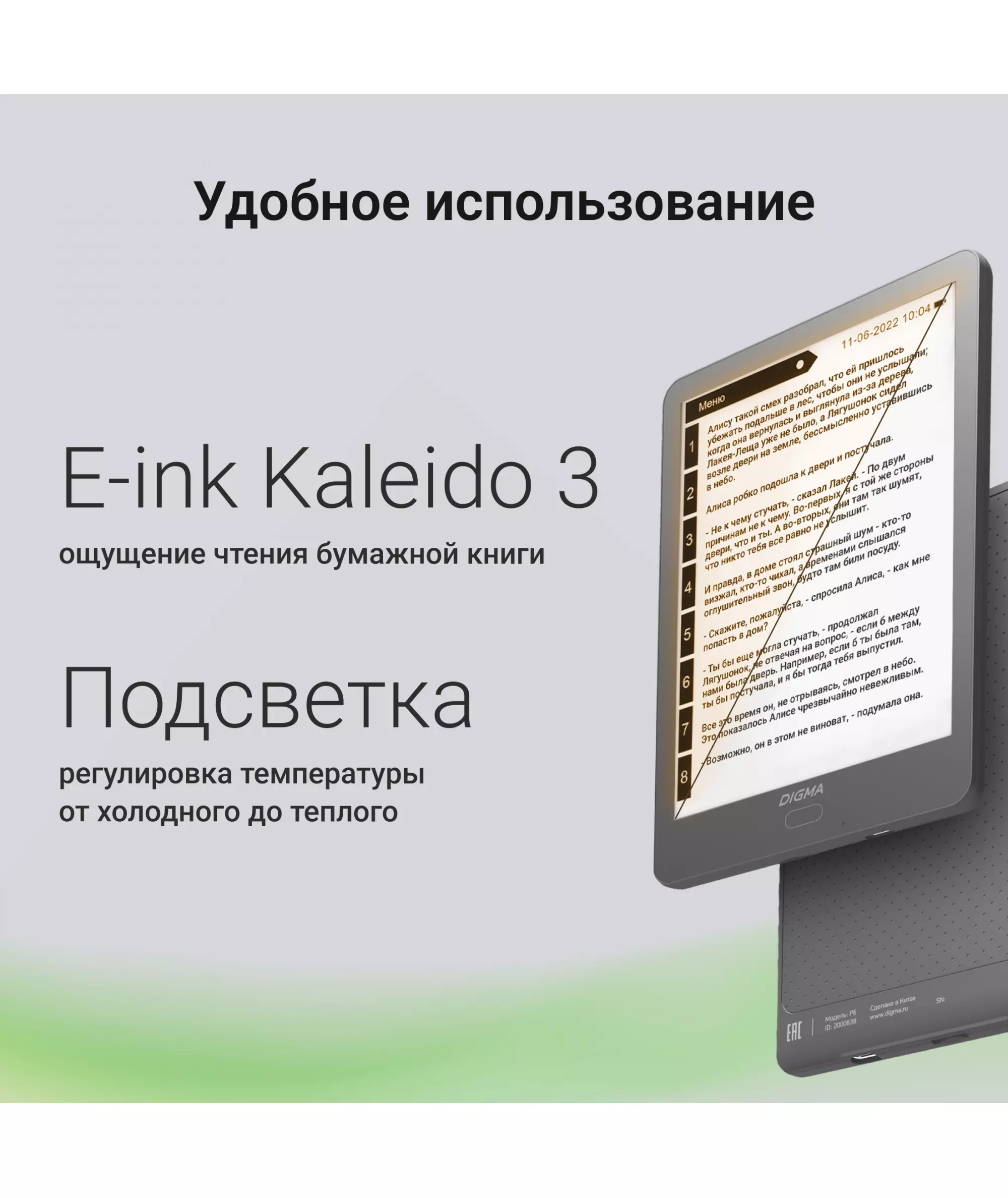 Электронная книга Digma P6B 6" E-Ink Kaleido 3 1072x1448 Touch Screen 1.8Ghz 3072/32Gb/SD/microSDHC темно-серый