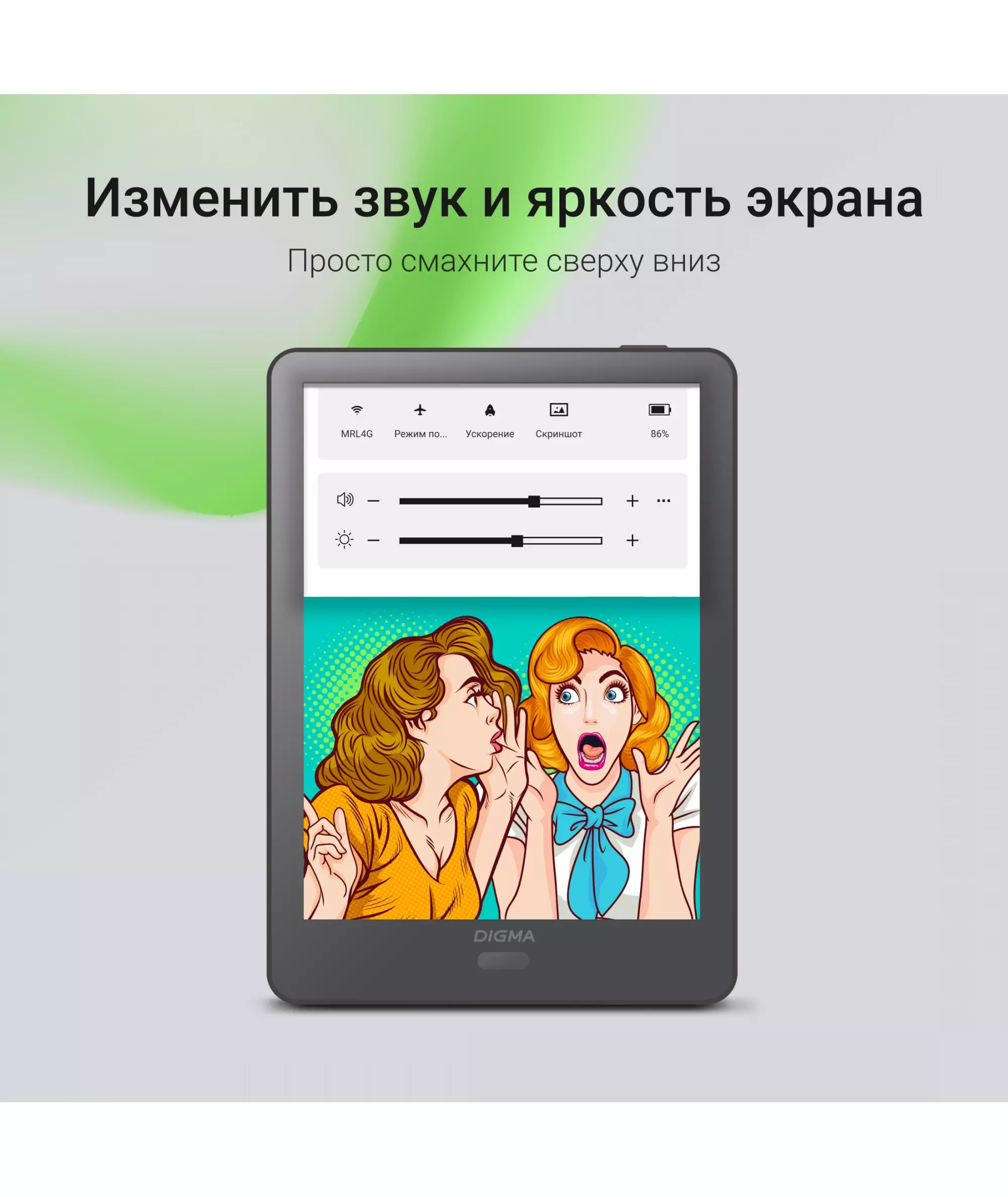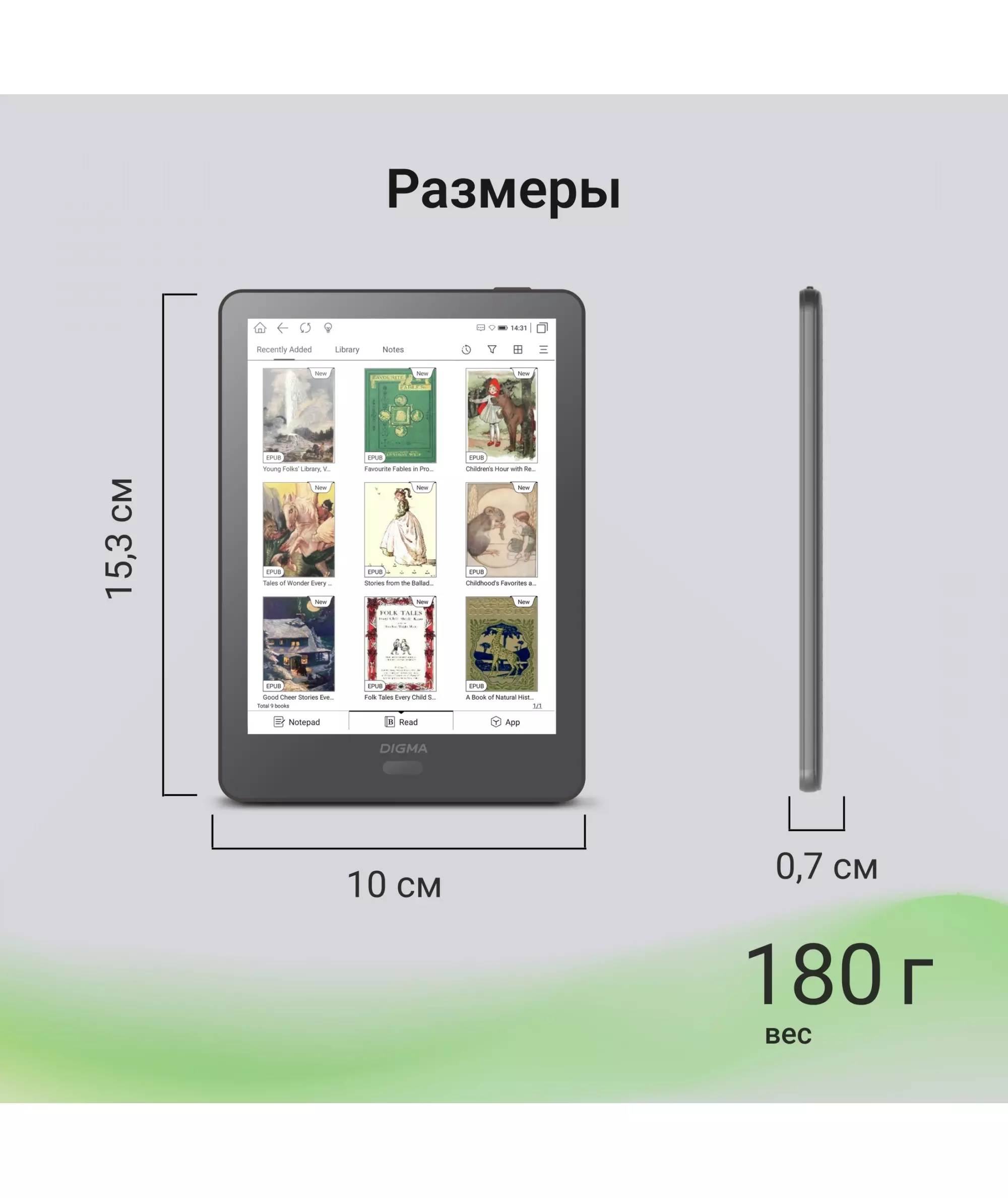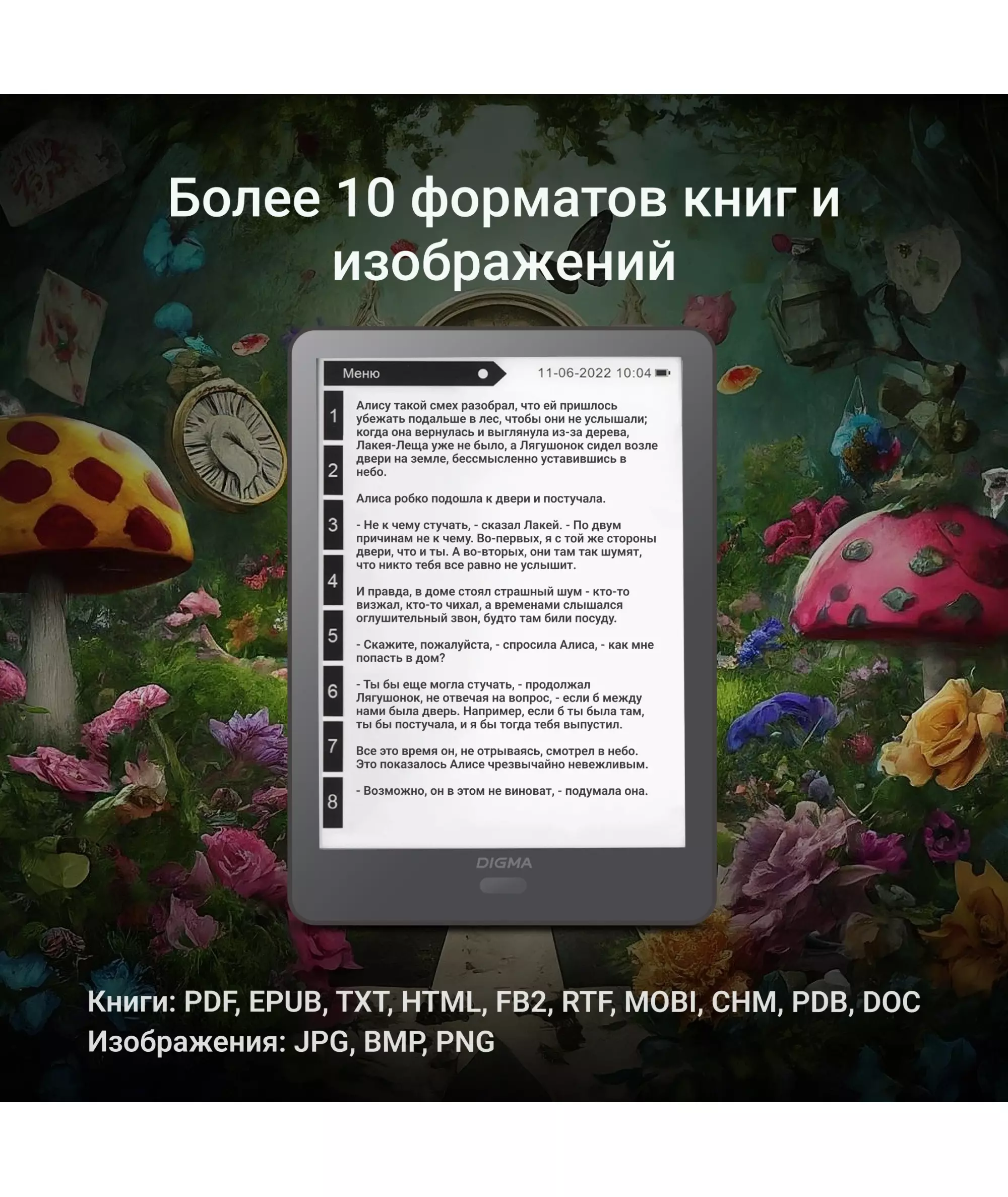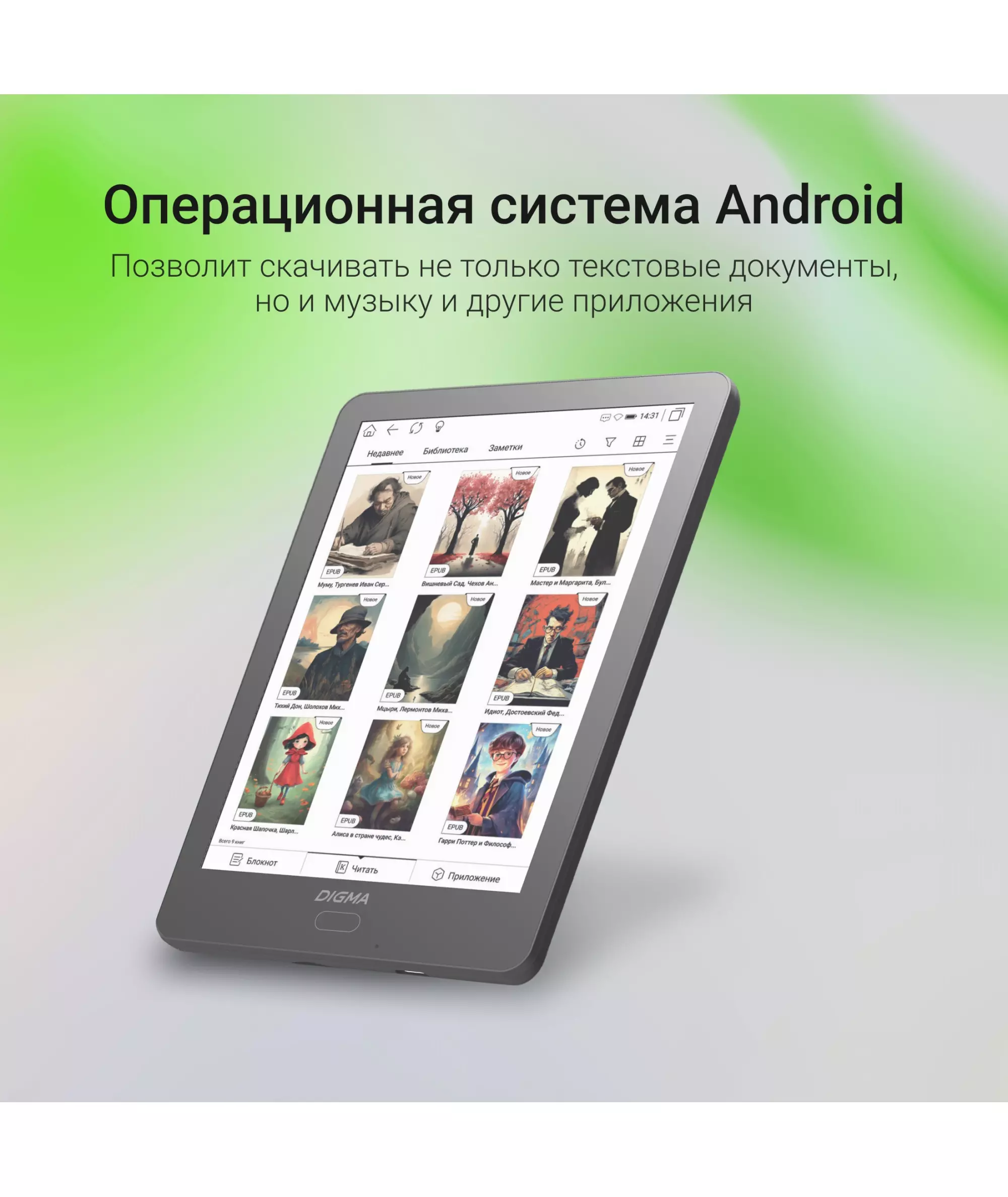 Электронная книга Digma P6B 6" E-Ink Kaleido 3 1072x1448 Touch Screen 1.8Ghz 3072/32Gb/SD/microSDHC темно-серый