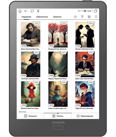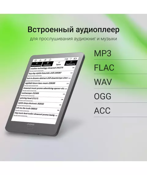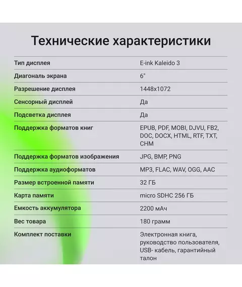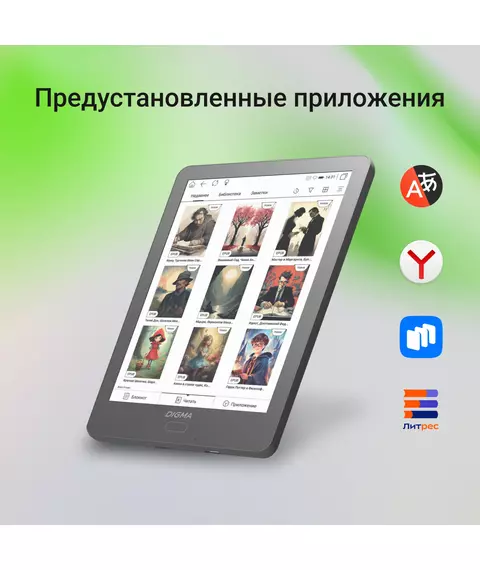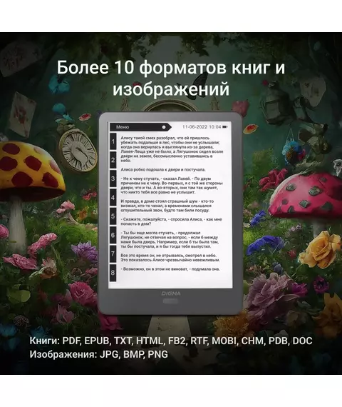 | Подержка форматов книг | EPUB, PDF, MOBI, DJVU, FB2, DOC, DOCX, HTML, RTF, TXT, CHM |