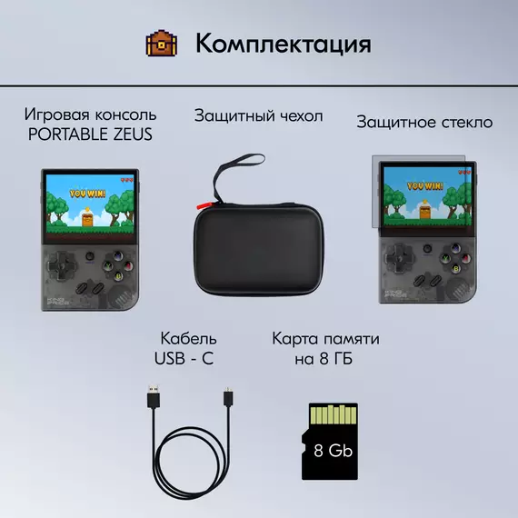 | Комплектация | Игровая консоль, кабель USB, защитное стекло, чехол, инструкция |