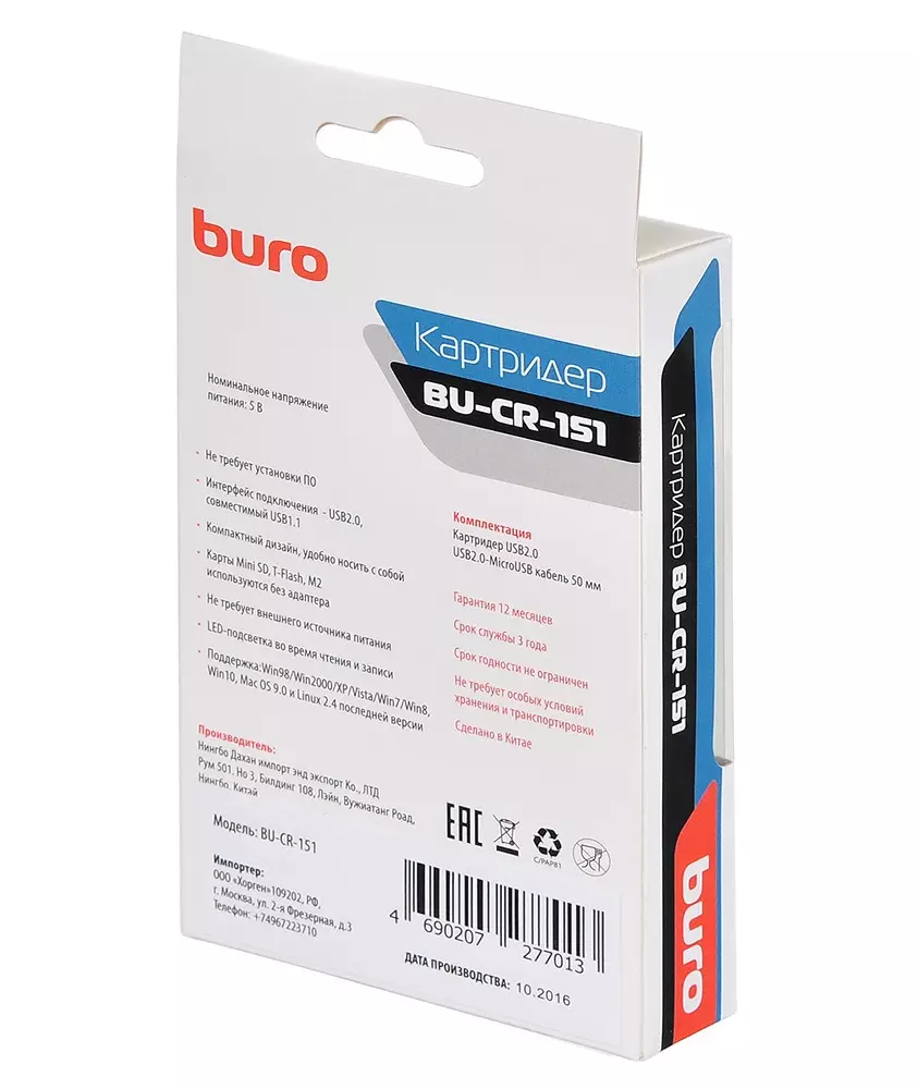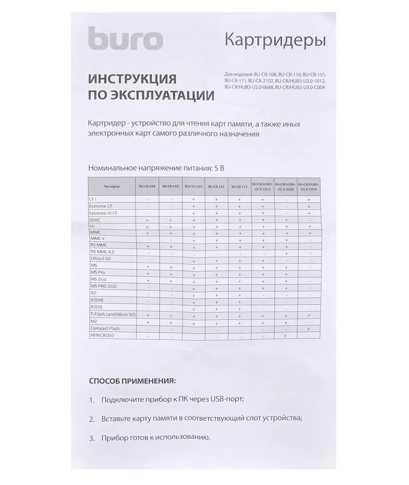 Устройство чтения карт памяти BURO BU-CR-151 USB2.0 черный