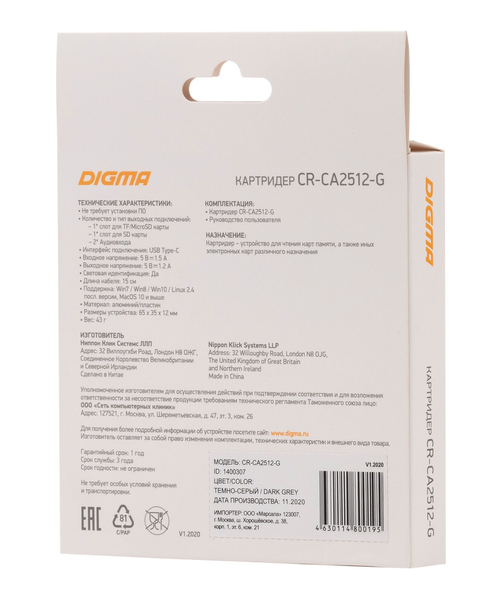 Описание Digma CR-СA2512-G
