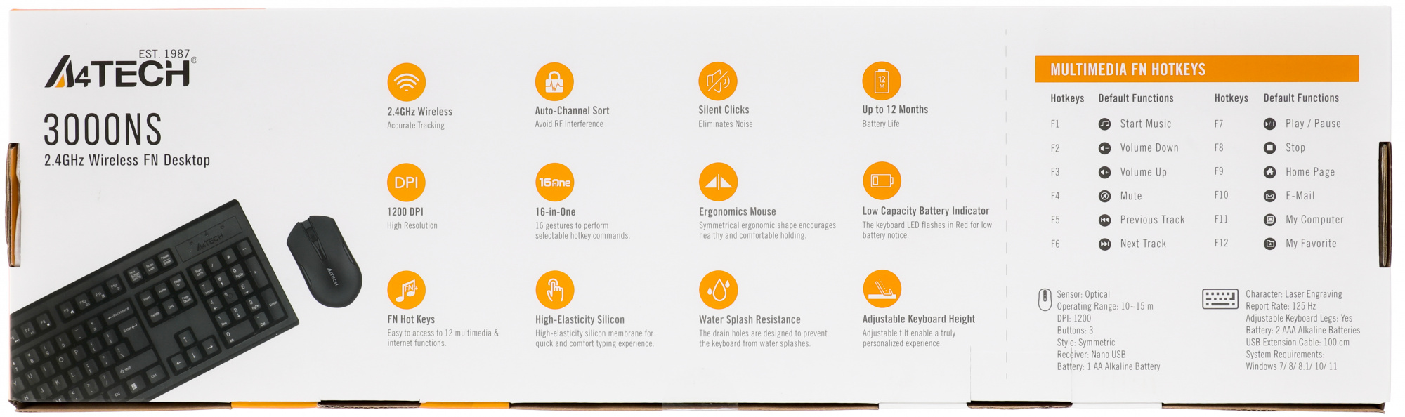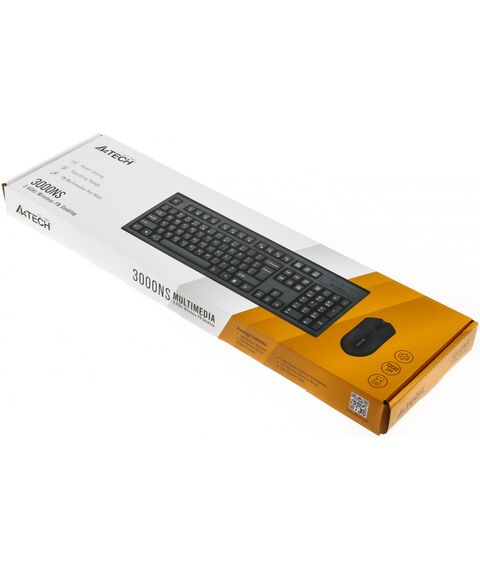 Клавиатура + мышь A4-Tech 3000NS клав:черный мышь:черный USB беспроводная Multimedia