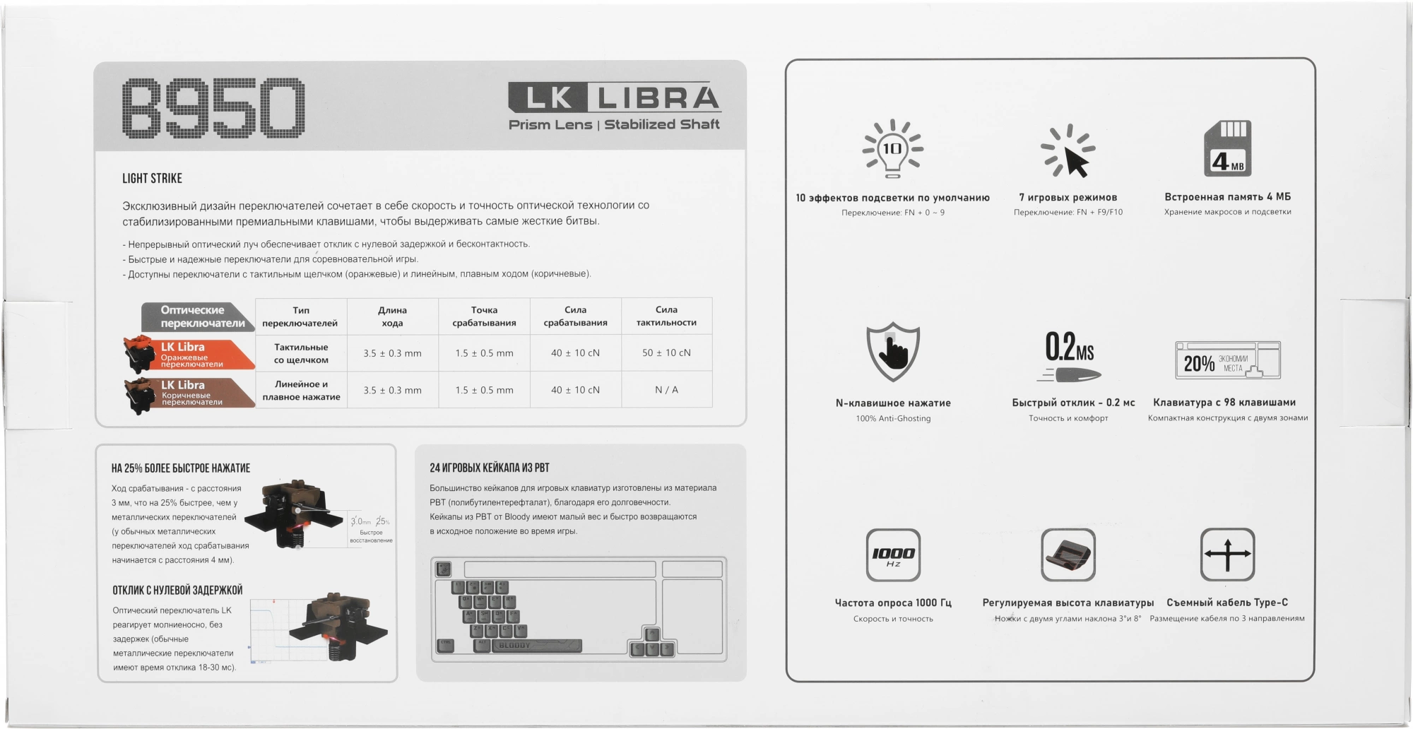 Клавиатура A4-Tech Bloody B950 механическая серый/черный USB for gamer LED