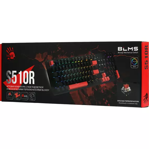 Клавиатура A4-Tech Bloody S510R FIRE BLACK/BLMS RED механическая черный USB for gamer LED