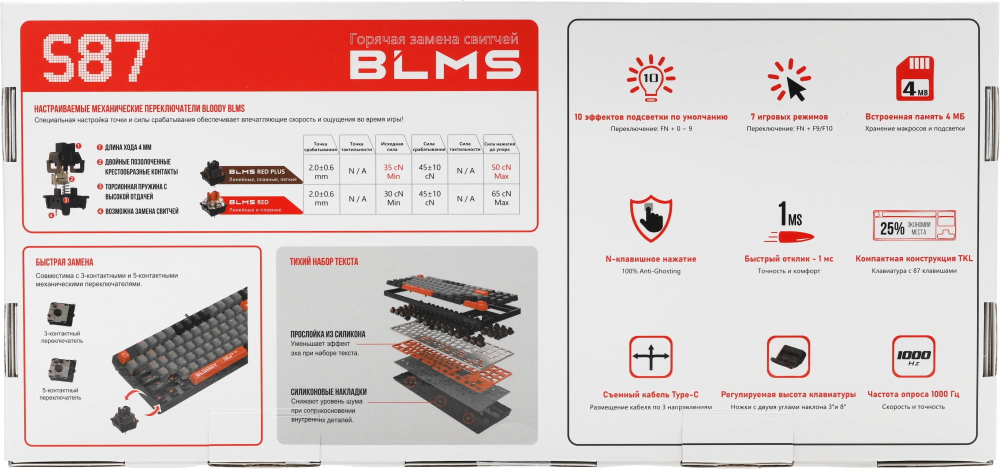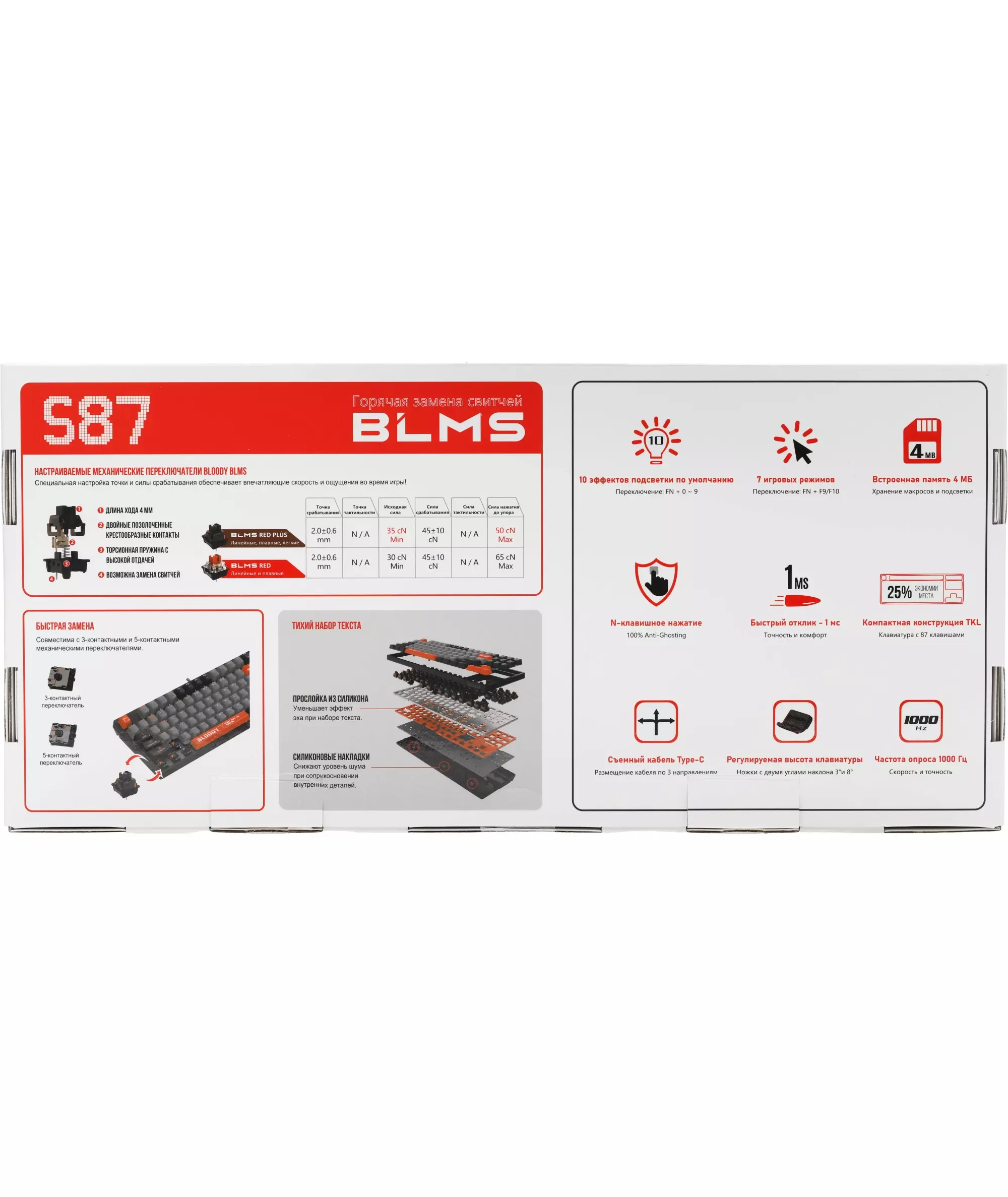 Клавиатура A4-Tech Bloody S87 Energy механическая черный USB for gamer LED [S87 USB ENERGY RED]