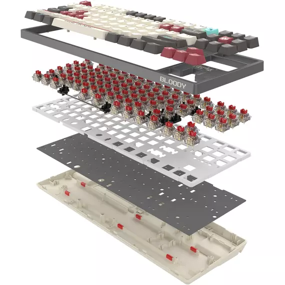 Клавиатура A4-Tech Bloody S87 PIXELS Red механическая серый/белый USB Multimedia for gamer LED