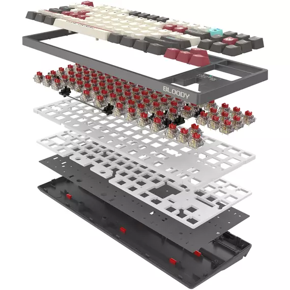 Клавиатура игровая A4-Tech Bloody WS87 механическая серый/красный USB беспроводная BT/Radio Multimedia LED
