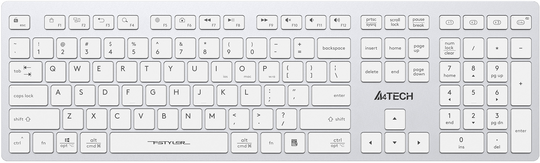 Клавиатура A4-Tech FBX50C WHITE белый USB беспроводная BT/Radio slim Multimedia