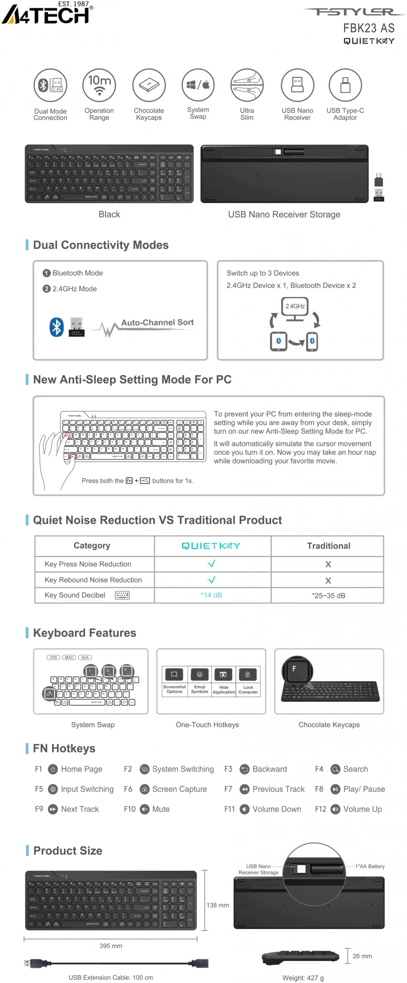 Наличие товара A4-Tech Fstyler FBK23 AS