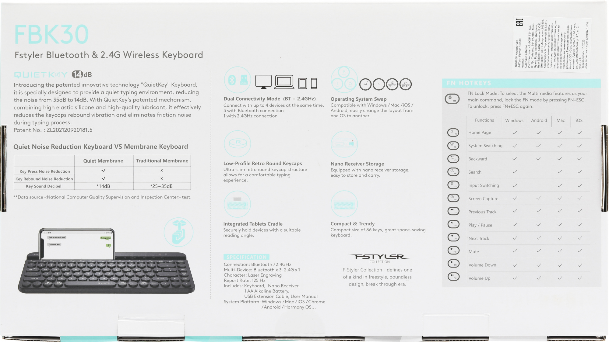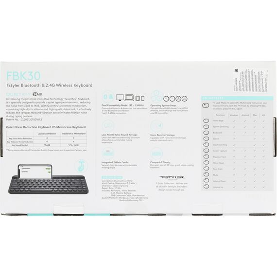 | Особенности | Клавиатура поддерживает два режима подключения - по беспроводной технологии Bluetooth и с помощью USB-ресивера 2,4 ГГц, и работает на удалении до 10 м, обеспечивая быструю передачу данных без задержек. |