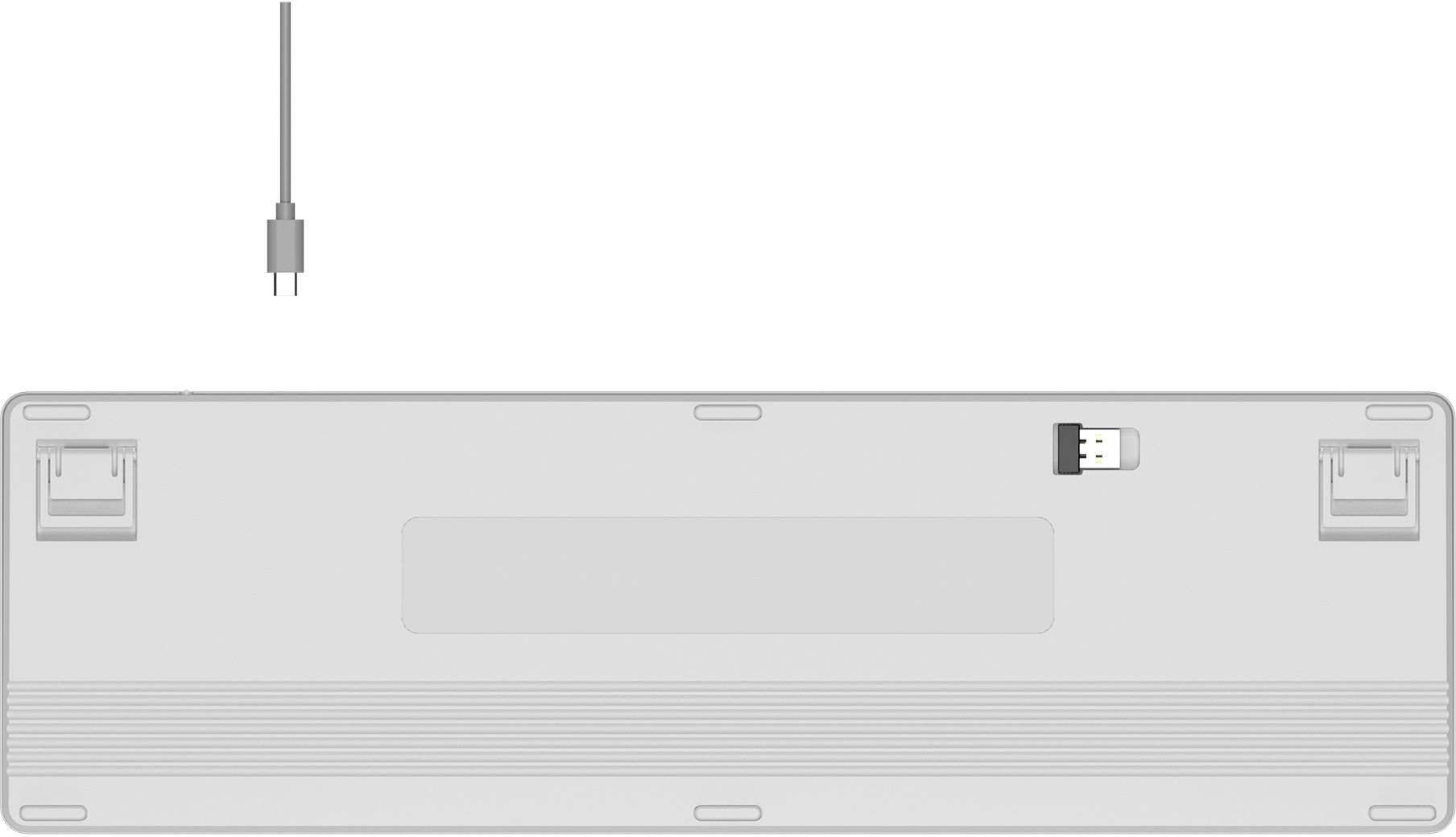 | Особенности | Клавиатура поддерживает два режима подключения - Bluetooth и с помощью USB-ресивера 2,4 ГГц. Работает с PC и Mac. Встроенная перезаряжаемая литиевая батарея емкостью 300 мАч позволяет использовать ее до 8 месяцев при полной зарядке.Ножки с двумя углами наклона по высоте 5° / 8° |