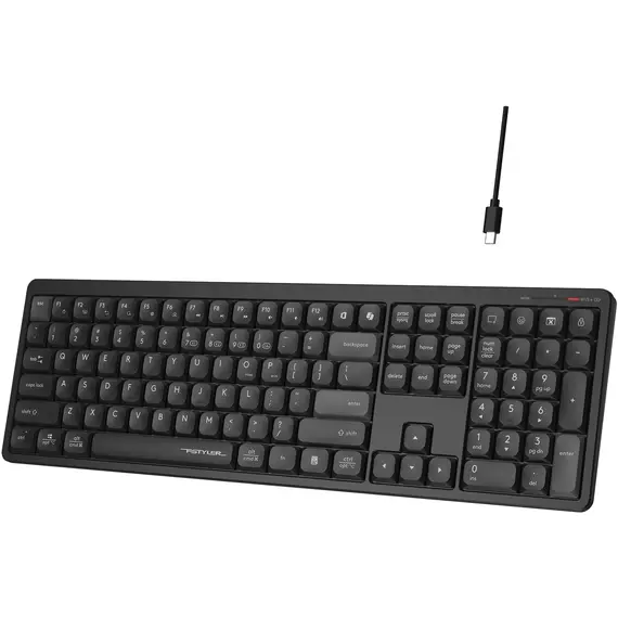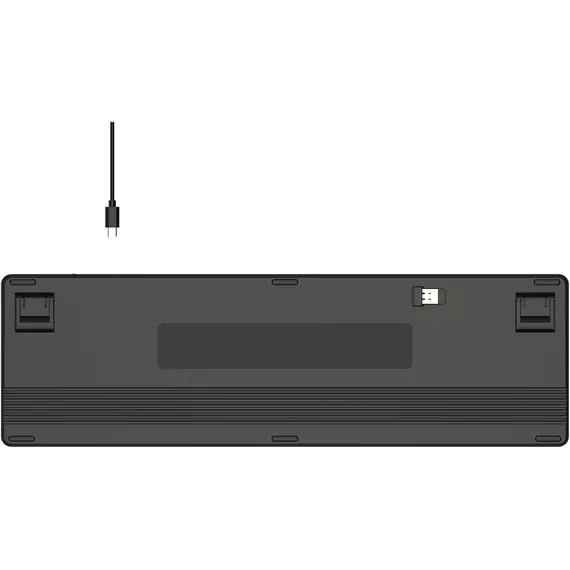| Особенности | Клавиатура поддерживает два режима подключения - Bluetooth и с помощью USB-ресивера 2,4 ГГц. Работает с PC и Mac. Встроенная перезаряжаемая литиевая батарея емкостью 300 мАч позволяет использовать ее до 8 месяцев при полной зарядке.Ножки с двумя углами наклона по высоте 5° / 8° |