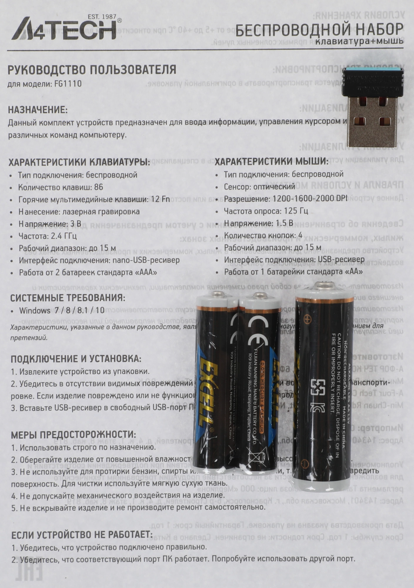 Описание A4-Tech Fstyler FG1110 [FG1110 GREY]