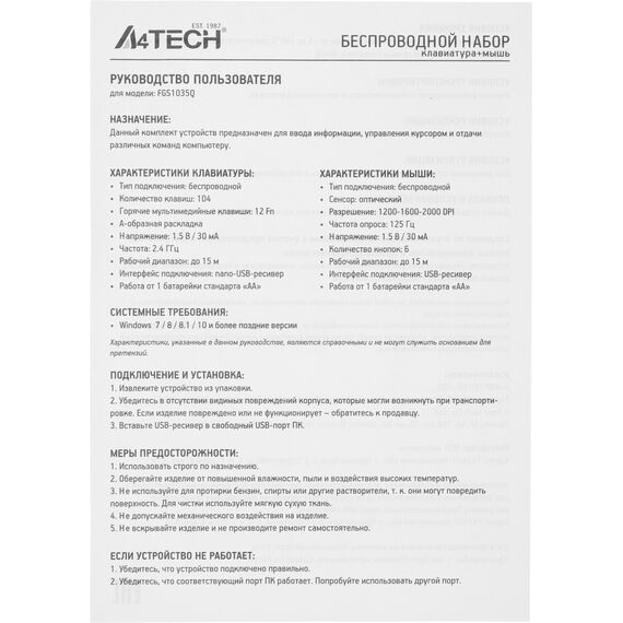 Описание A4-Tech Fstyler FGS1035Q GREY