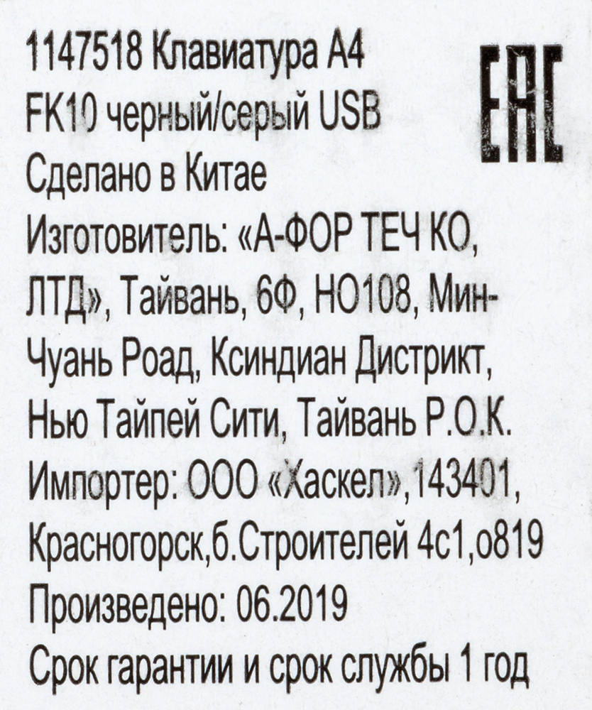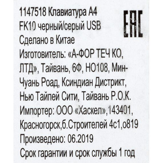 Наличие товара A4-Tech Fstyler FK10 GREY