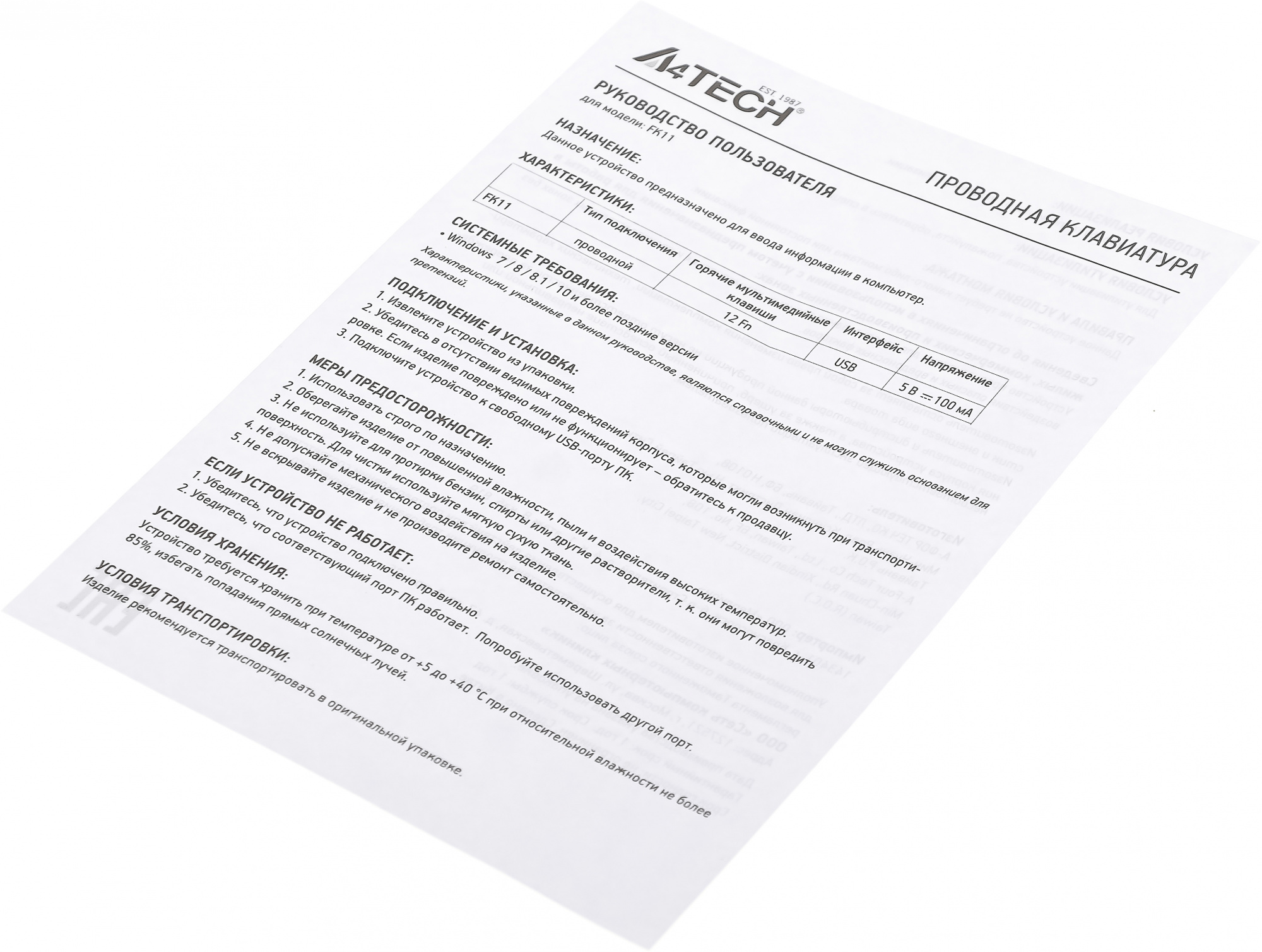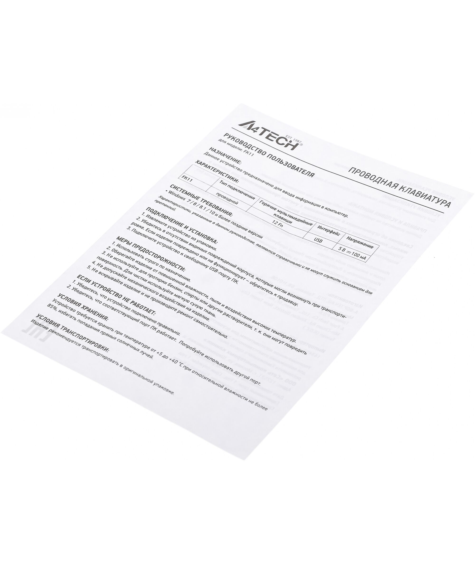 Описание A4-Tech Fstyler FK11 GREY