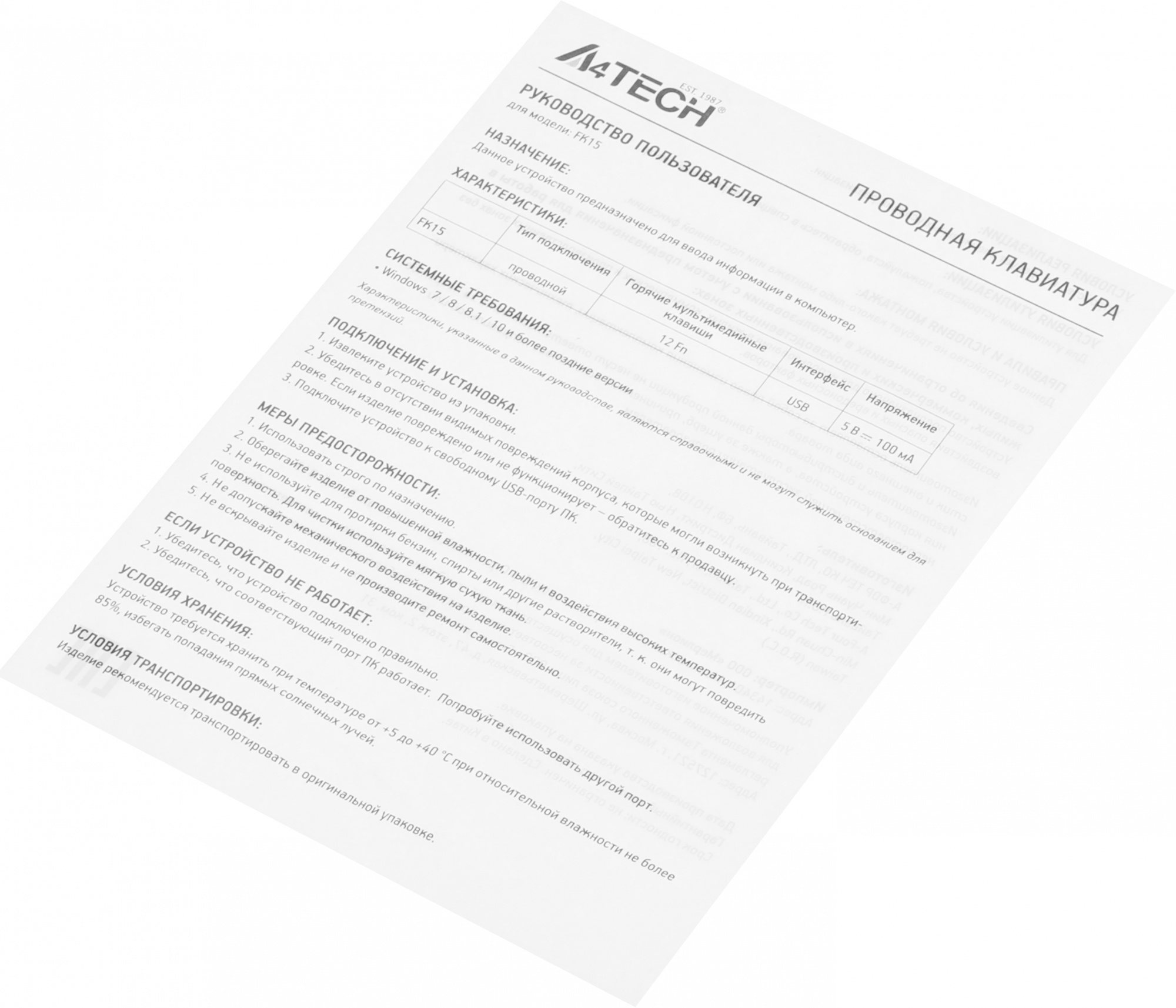 Наличие товара A4-Tech Fstyler FK15 WHITE