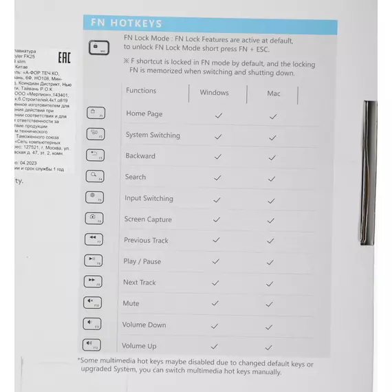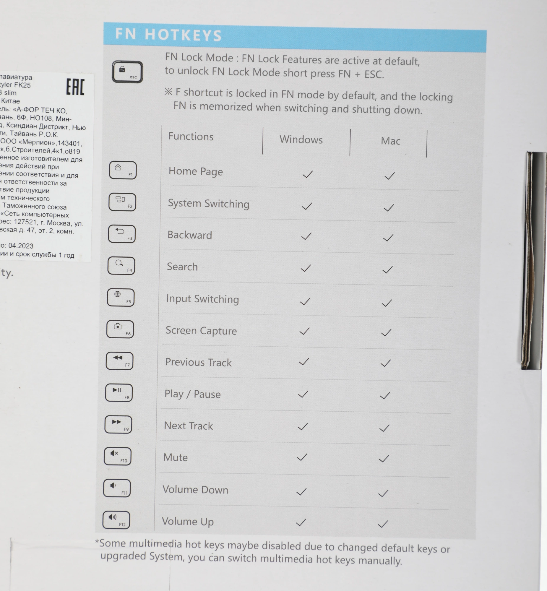Наличие товара A4-Tech Fstyler FK25 WHITE