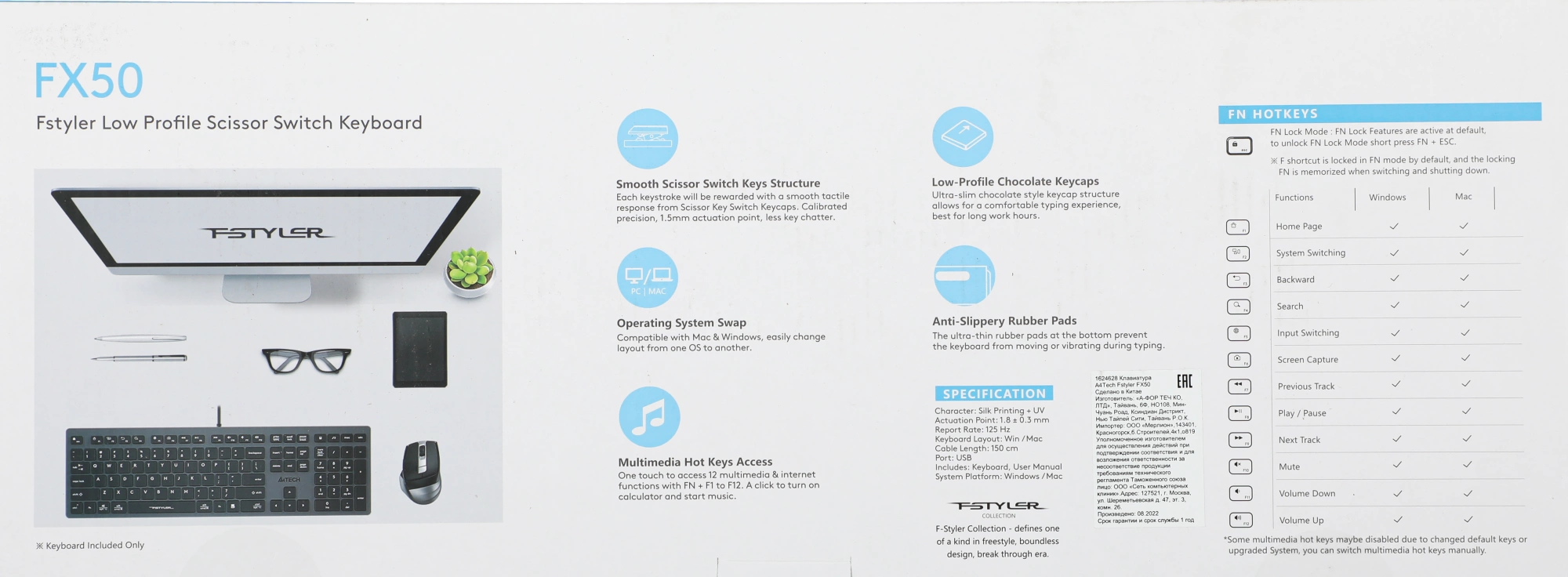 Клавиатура A4-Tech Fstyler FX50 GREY серый USB slim Multimedia