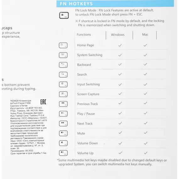 Наличие товара A4-Tech Fstyler FX50 GREY