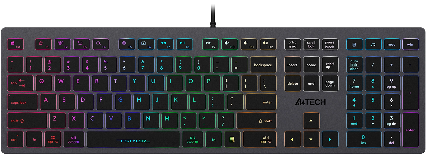 Клавиатура A4-Tech Fstyler FX60H GREY/NEON серый USB slim LED