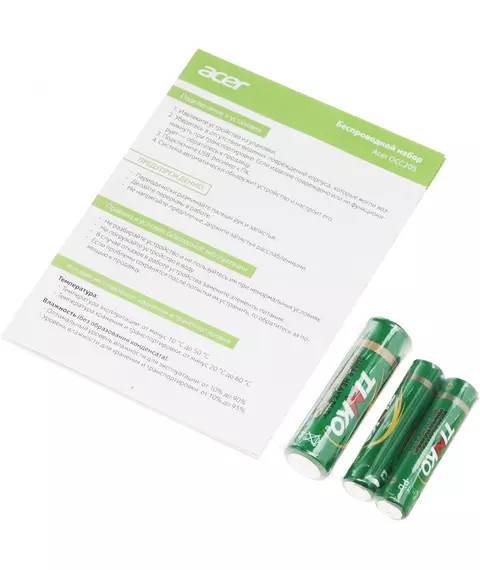 | Комплект поставки | Беспроводные клавиатура и мышь USB-ресивер (единый для двух устройств)Батарейки АА х 1 штБатарейка ААА х 2 штКраткое руководство пользователя |