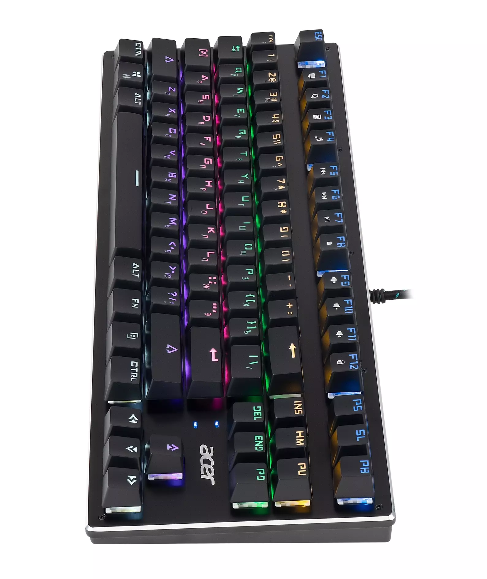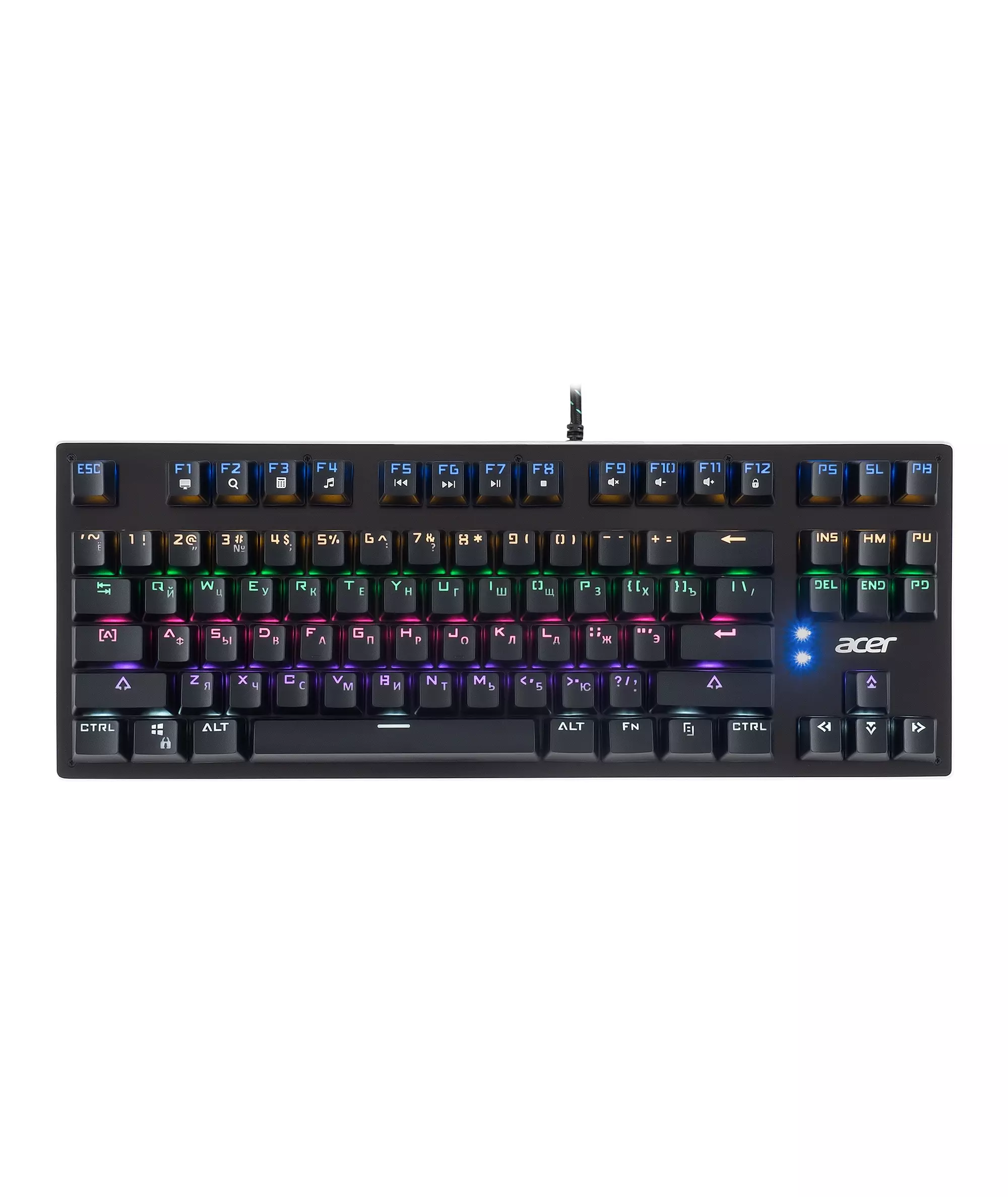 | Особенности | Компактная механическая клавиатура без цифрового блока. Занимает меньше места. Прорезиненные ножки, Жесткая металлическая пластина, длинный кабель, регулируемая подсветка. Поддержка мультимедийных функций. Универсальный инструмент для работы и игр.Функция регулировки яркости подсветки. |