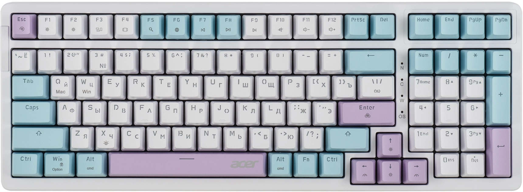 | Цвет клавиш | белый, голубой, фиолетовый |