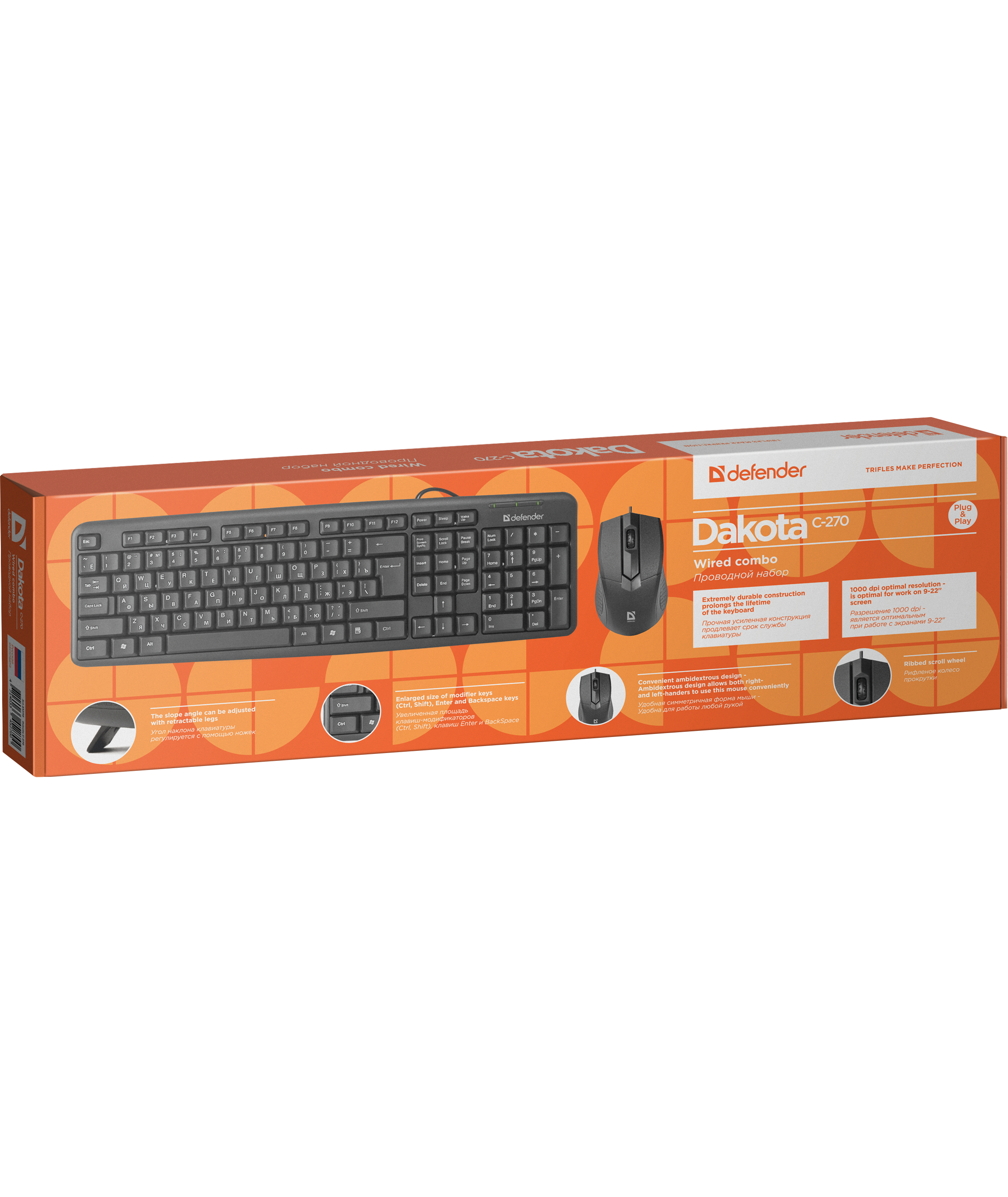 Проводной набор кл-ра+мышь Defender Dakota C-270 черный [45270]