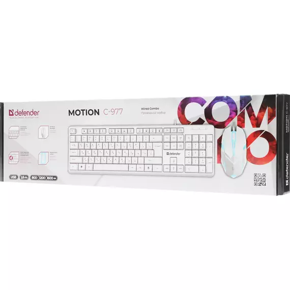 Клавиатура + мышь Defender Motion C-977 клав:белый мышь:белый/розовый USB Multimedia [45977]
