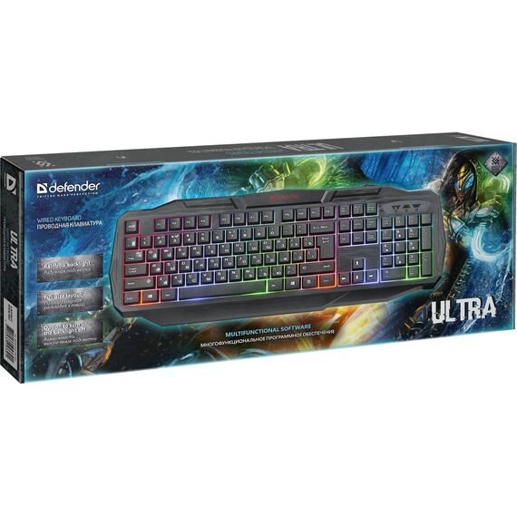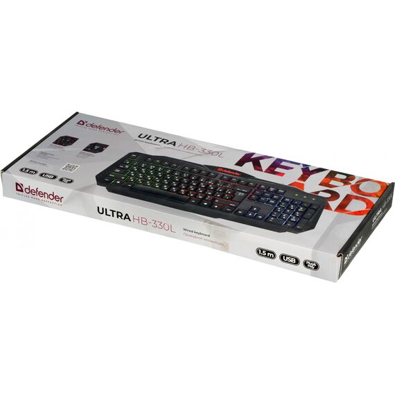 Клавиатура Defender Ultra HB-330L черный USB LED подставка для запястий [45330]