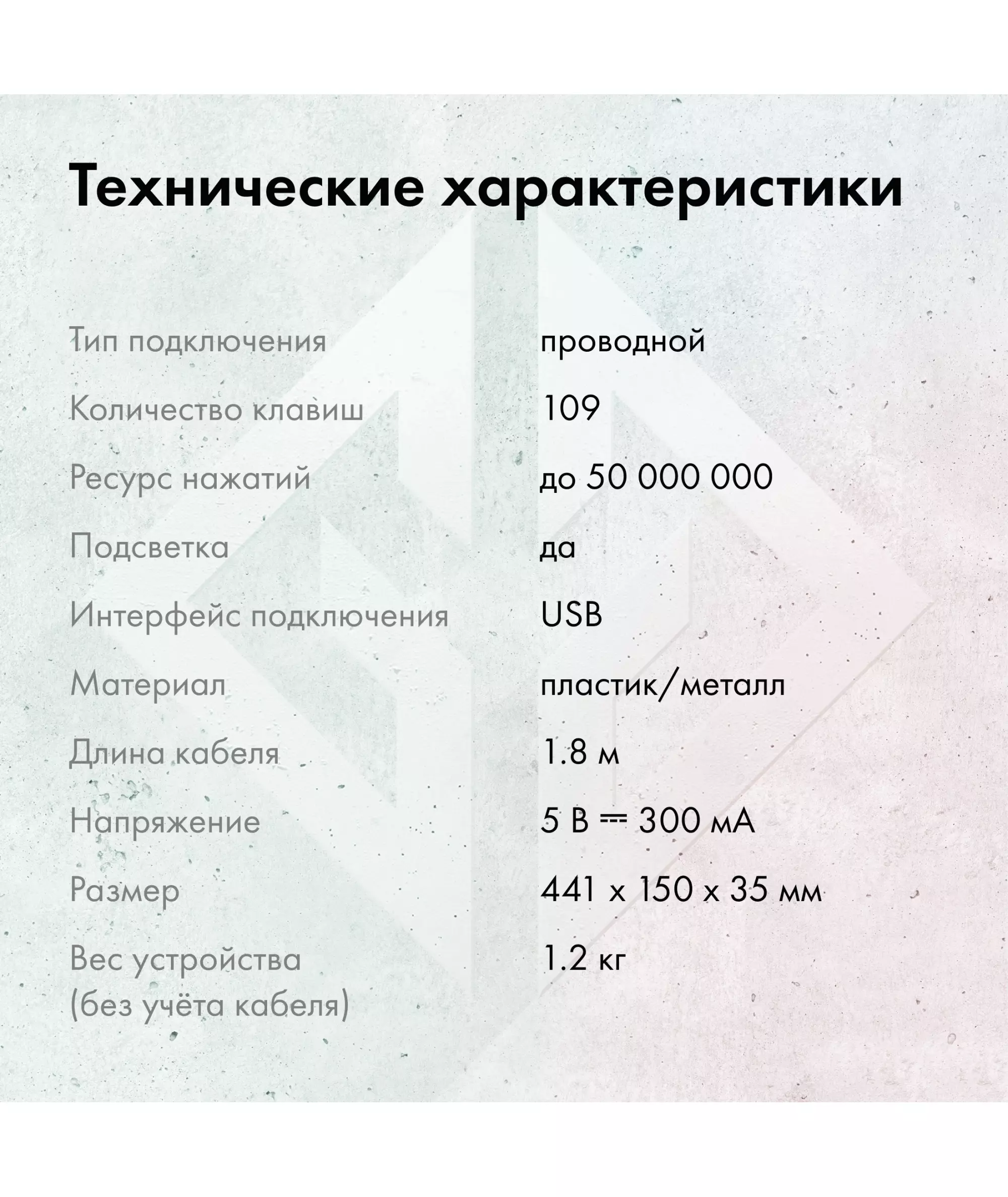 | Особенности | Ресурс нажатий: до 50 000 000 |