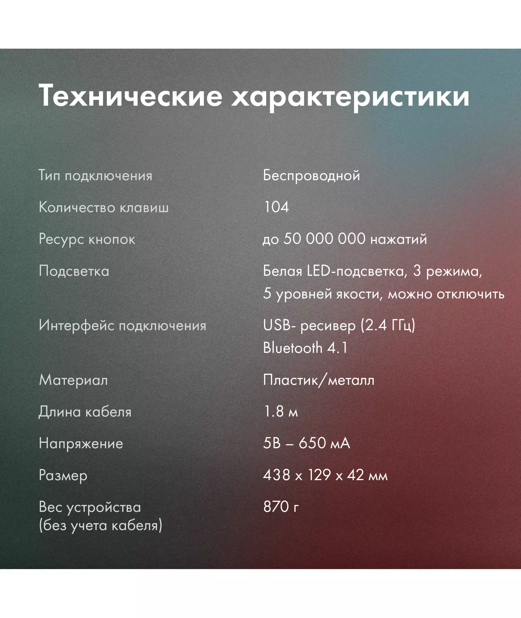 Клавиатура GMNG GG-KB785XW механическая черный/серый USB беспроводная BT/Radio Multimedia for gamer Touch LED (подставка для запястий) [1901105]