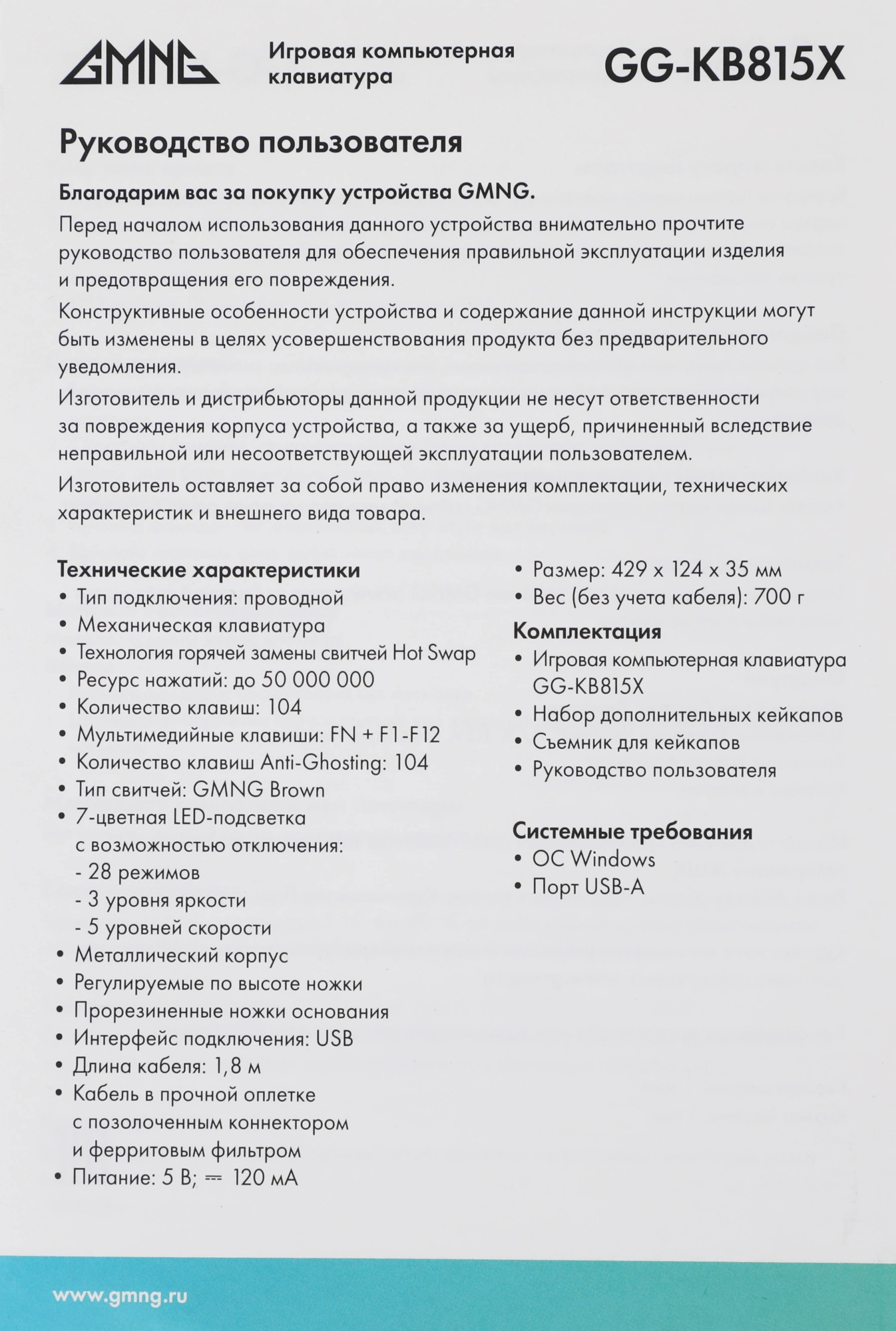 Описание GMNG GG-KB815X [1913914]