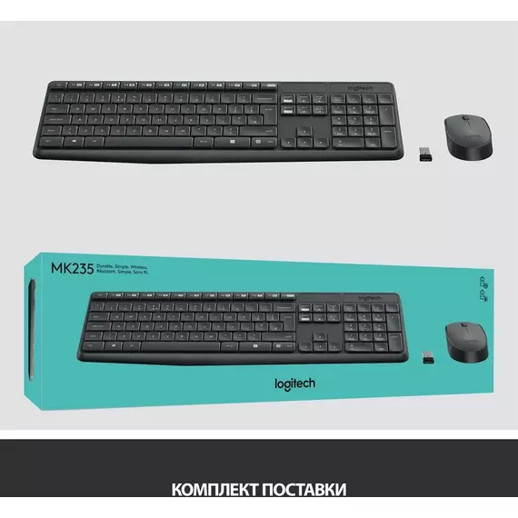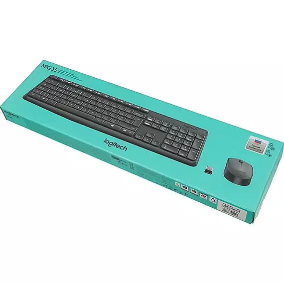 Клавиатура + мышь Logitech MK235 клав: серый мышь: серый/черный USB беспроводная Multimedia [920-007949]