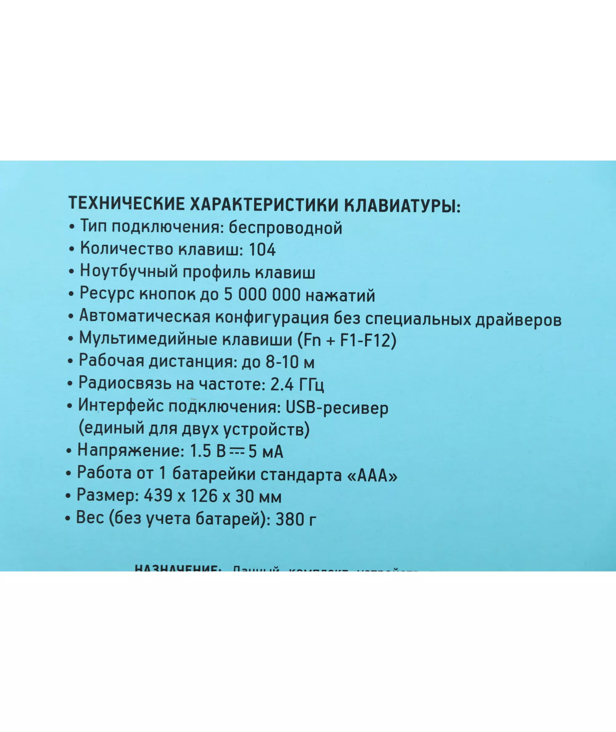 | Размеры клавиатуры | 439x126x30мм |