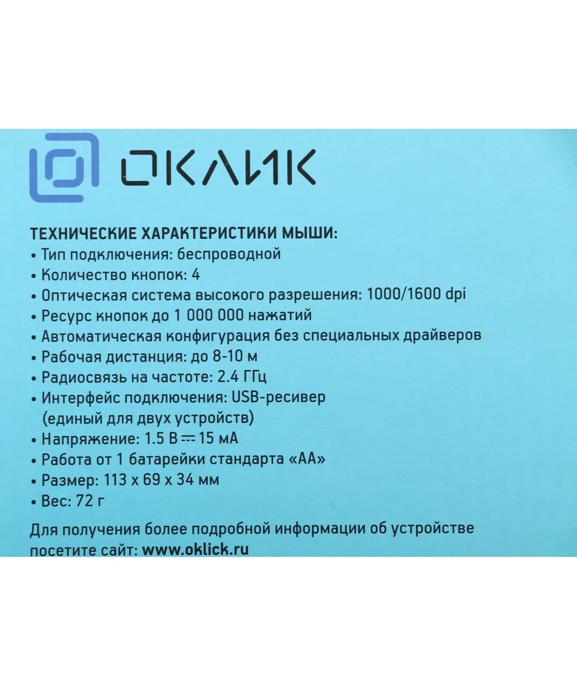 | Размеры мыши | 113x69x34мм |