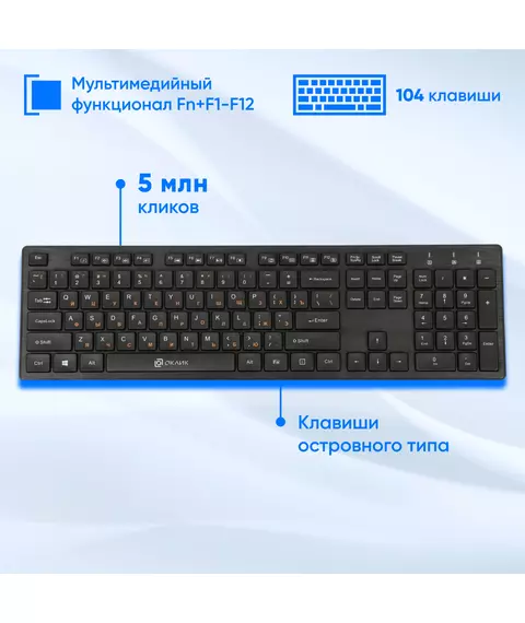 Клавиатура + мышь Oklick 240M клав:черный мышь:черный USB беспроводная slim Multimedia [1091253]
