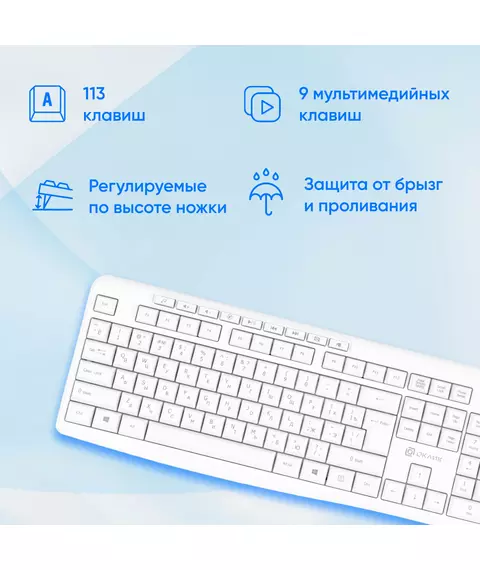 Клавиатура Oklick 305M белый USB Multimedia [1875227]