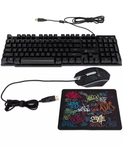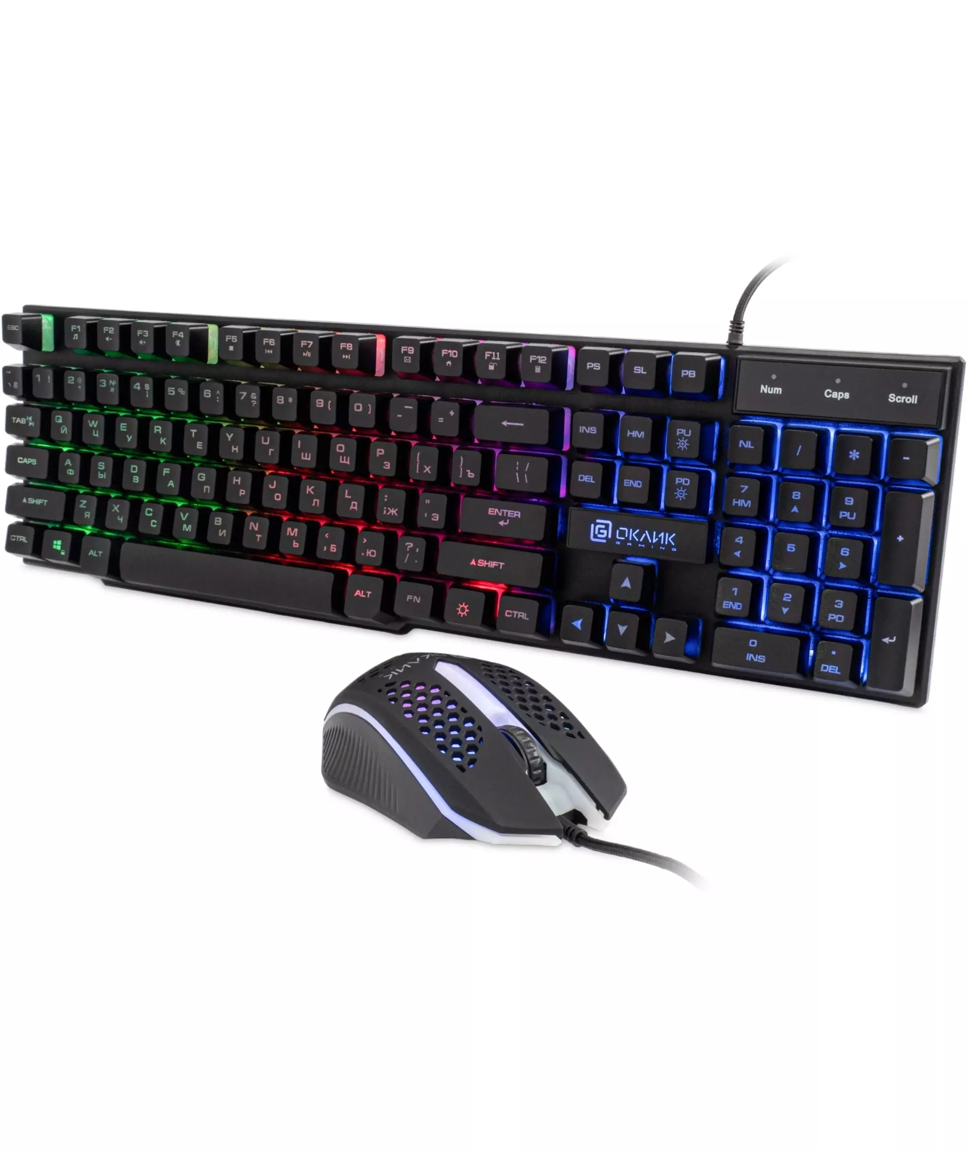 Клавиатура + мышь Oklick 400GMK клав:черный мышь:черный USB LED [1546779]