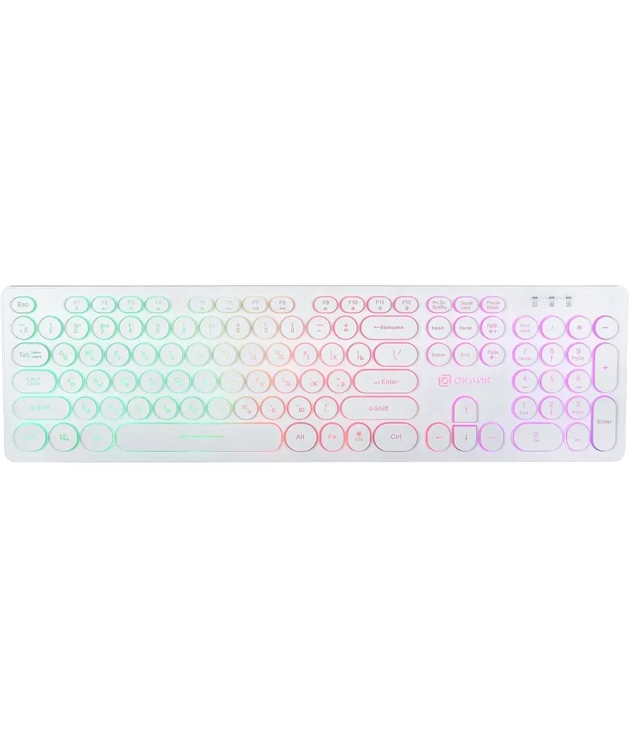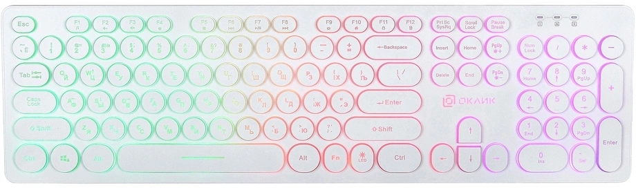 Клавиатура Oklick 420MRL белый USB slim Multimedia LED [1091227]