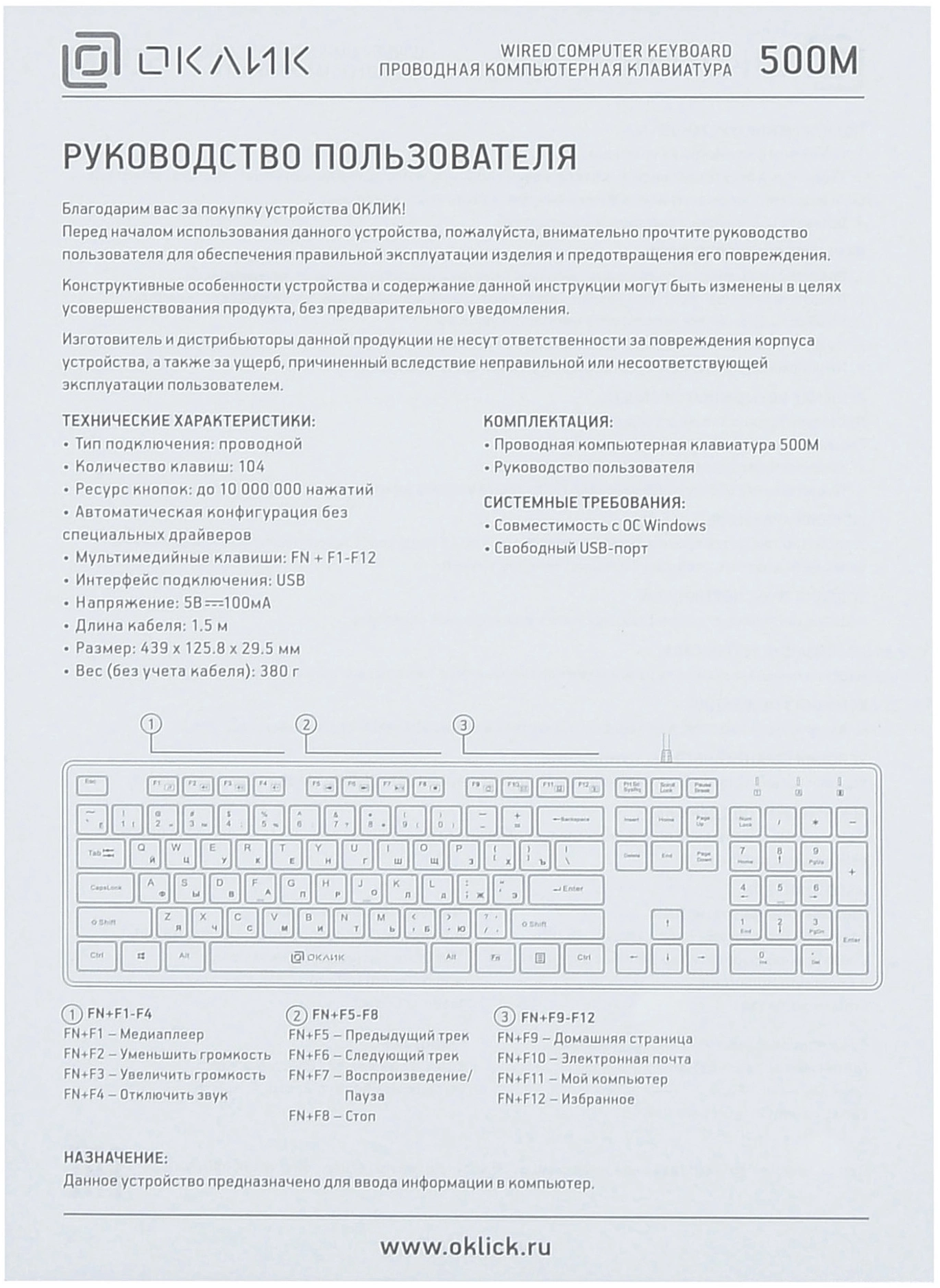 | Особенности | Клавиатура slim-дизайна с клавишами островного типа с мультимедийными функциями |