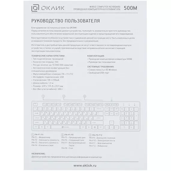| Размеры клавиатуры | 439x29.5x125.8 |